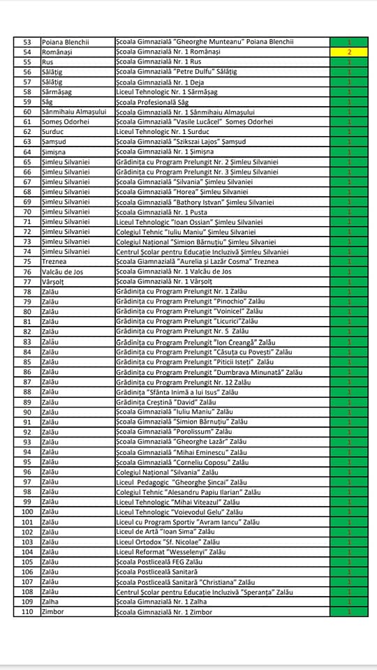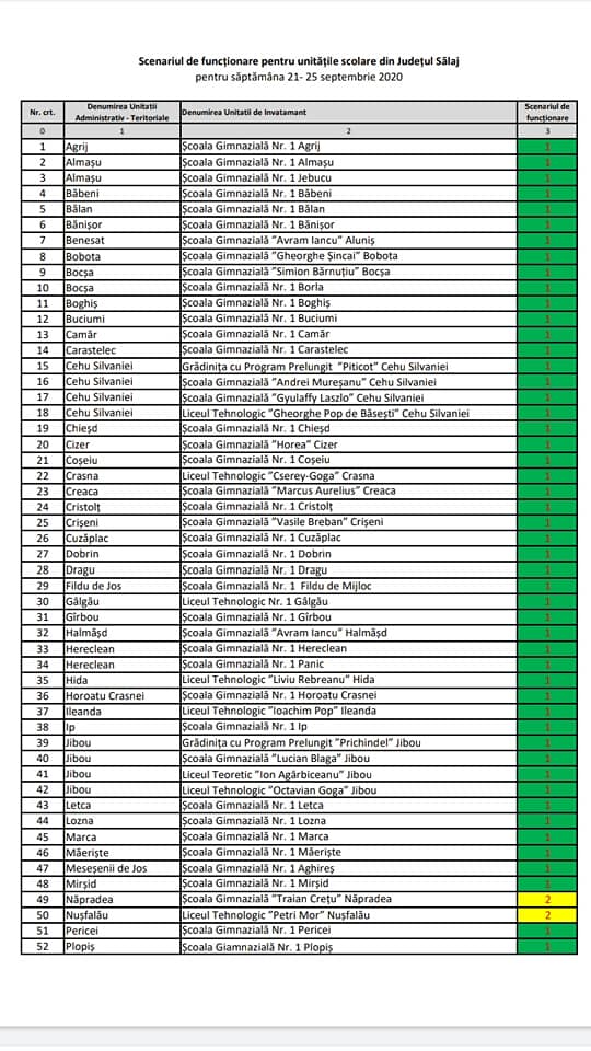 În urma ședinței extraordinare a Comitetului Județean Pentru Situații de Urgență Sălaj, s-a decis ca începând de luni, 21 septembrie, în trei școli din județ să fie aplicat Scenariul galben de organizare şi desfăşurare a cursurilor.