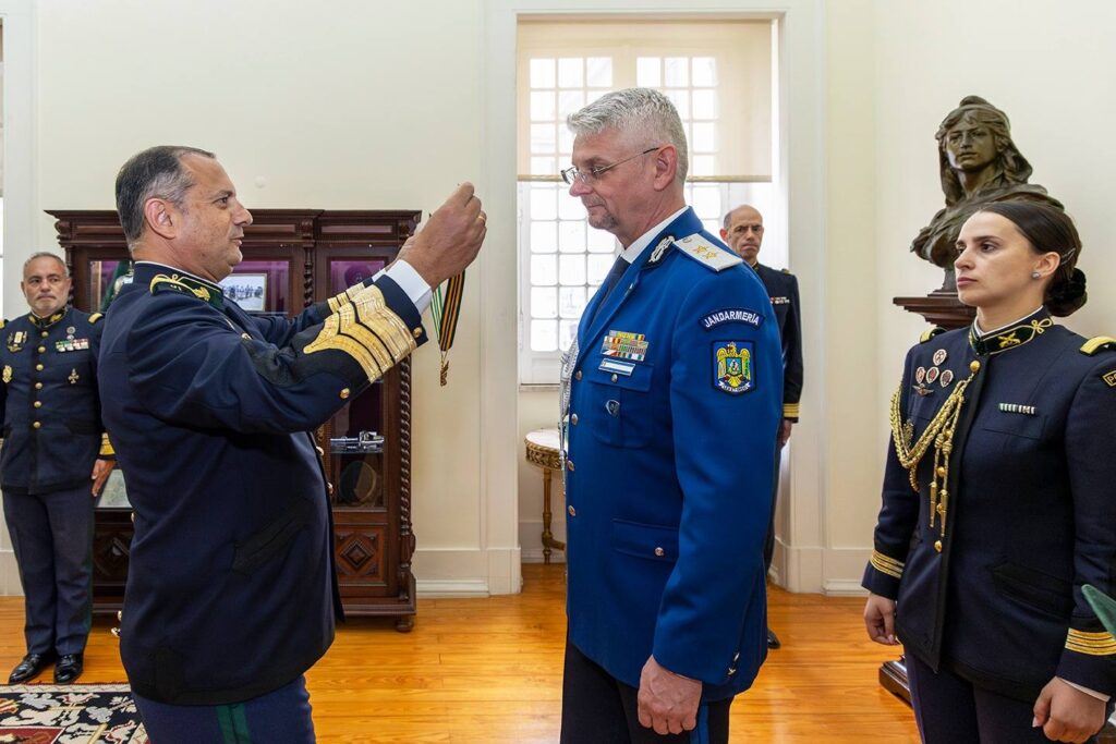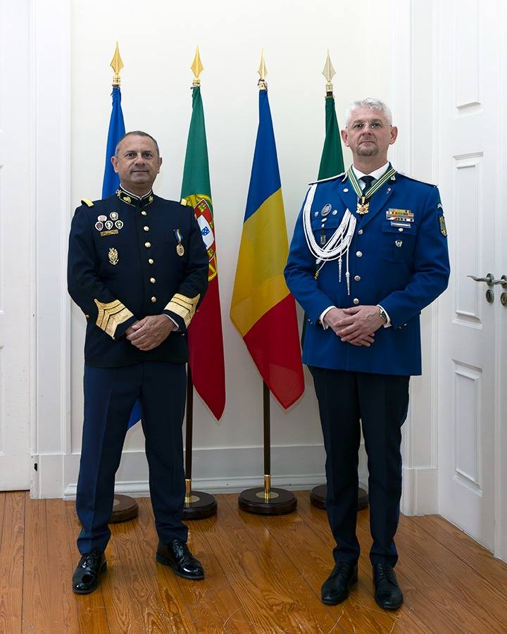 Momentul deosebit al vizitei a fost marcat de ceremonia de decorare a inspectorului general al Jandarmeriei Române, care a primit Medalia de Merit a Gărzii Naționale Republicane Portugheze, ca semn de apreciere pentru contribuția sa la întărirea relațiilor de cooperare bilaterală.
