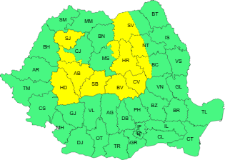 În sudul și estul Transilvaniei, precum și în zona Munților Apuseni și în Carpații Orientali vor fi perioade cu instabilitate atmosferică ce se va manifesta prin averse torențiale, descărcări electrice, intensificări ale vântului, vijelii (rafale de 50-70 km/h) și izolat grindină. În intervale scurte de timp sau prin acumulare, cantitățile de apă vor fi de 20-30 l/mp și izolat de peste 40 l/mp.