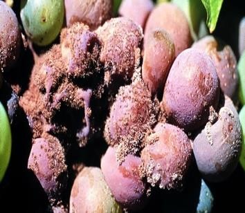 BOTRYTIS CINEREA ( putregaiul cenușiu ) – ciupercă rezistă, de la un an la altul prin scleroti și miceliu pe coarde. Primăvară, sclerotii germinează și dau conidii care produc infecții primare, pregătind epidemia. Pe organele atacate, că urmare a infecțiilor primare, se formează conidiofori cu conidii ce dau numeroase infecții secundare în cursul verii, în funcție de condițiile climatice. Afectează mai ales ciorchinii și boabele și într-o măsură mai mică frunzele și lăstarii. Cel mai păgubitor atac apare toamna pe struguri,