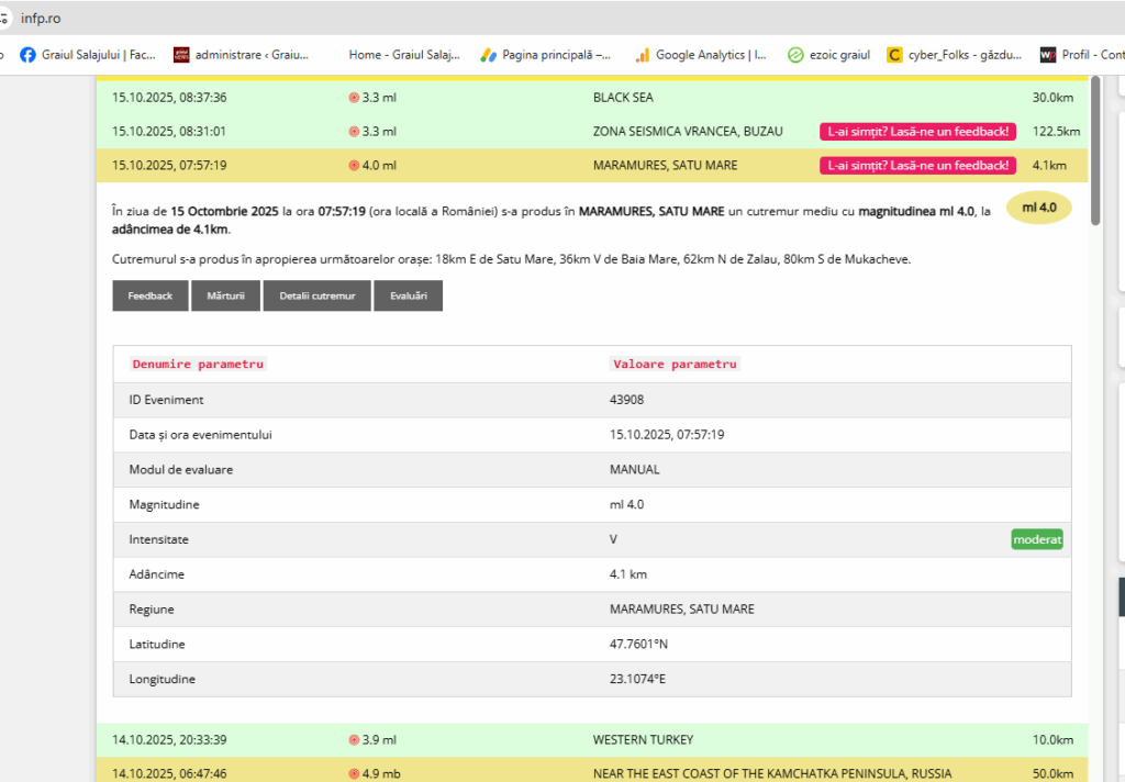 Sătmăreni din municipiul Satu Mare, dar și din Culciu, Lazuri, Odoreu și Medieșu Aurit au raportat faptul că au resimțit cutremurul din această dimineață.