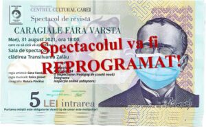 Spectacolul de teatru “Caragiale fără vârstă” va fi reprogramat, anunță organizatorii. "Având în vedere problemele de sănătate ale unor artiști,...