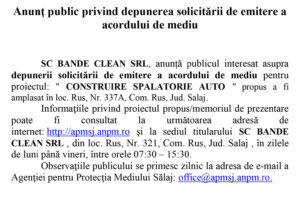 SC BANDE CLEAN SRL, anunță publicul interesat asupra depunerii solicitării de emitere a acordului de mediu pentru proiectul: " CONSTRUIRE...