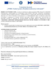 Comunicat de presă „PNRR: Fonduri pentru România modernă și reformată!” PROIECT M EVOSTRUCT SRL, în calitate de beneficiar în cadrul...