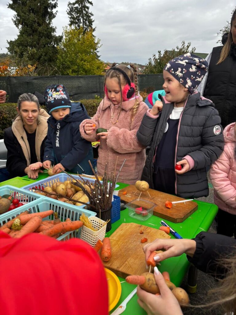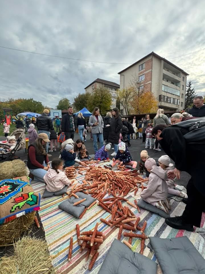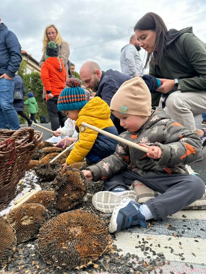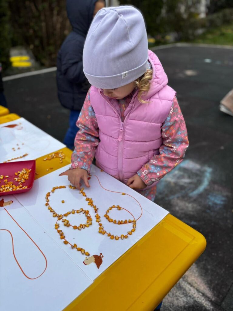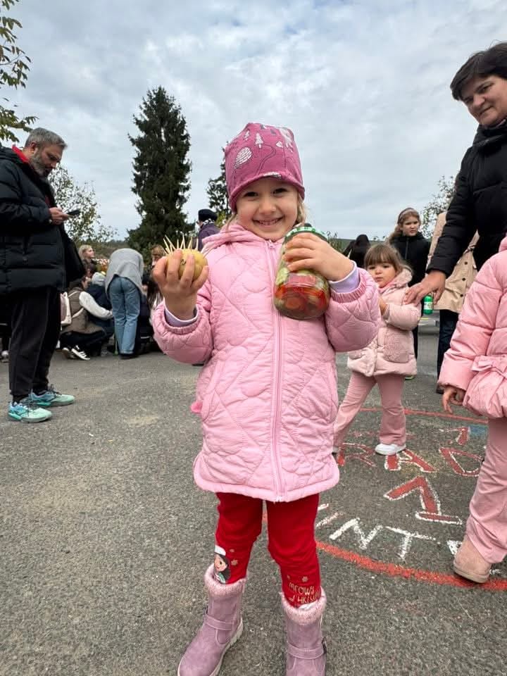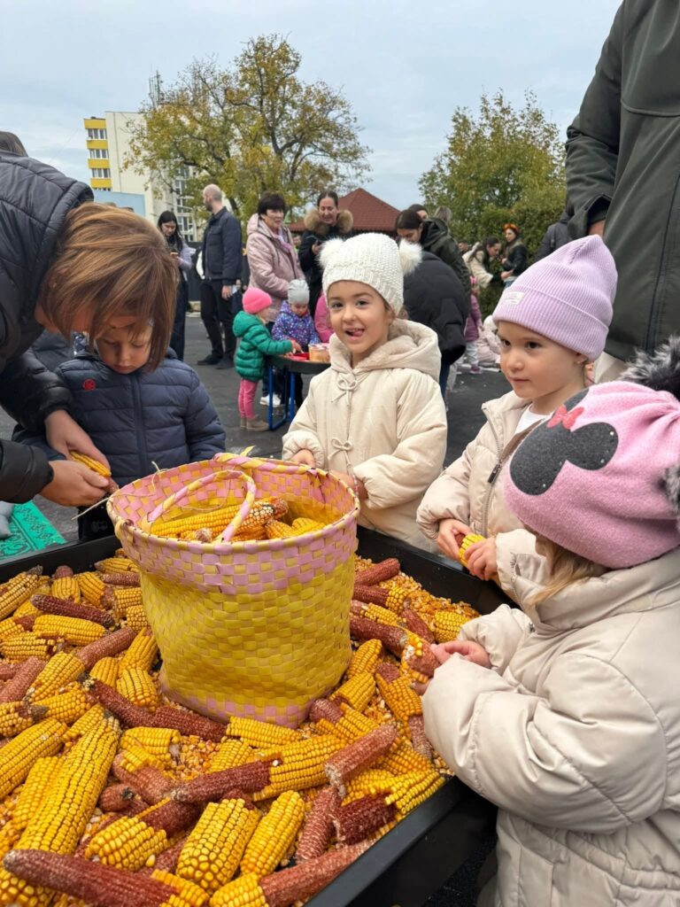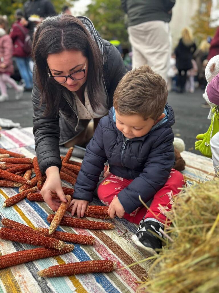 Copiii au descoperit, prin joacă, Povestea porumbului – au frecat știuleți, au desenat în făină de mălai, au construit căsuțe din coceni, au hrănit animale și au gustat bunătăți tradiționale: popcorn, prăjitură cu mălai și mămăligă delicioasă! De la floarea-soarelui, au învățat drumul uleiului — au bătut florile pentru semințe, au decorat crafturi pline de culoare și au savurat pâine cu ulei, așa cum făceau odinioară bunicii. În colțul plin cu arome de fructe și legume, micii gospodari au pus compot și murături, au decorat fructe și legume și s-au bucurat de gustul dulce al sucului de mere.