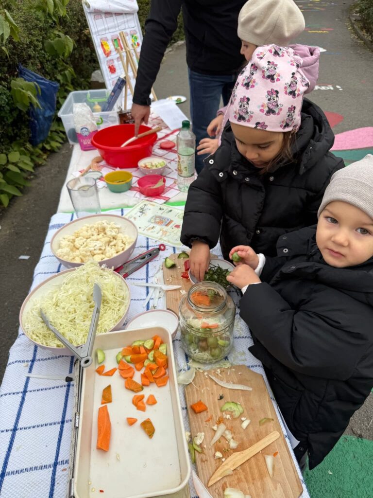 Din grădina de legume, coșurile s-au umplut cu toate cele necesare pentru murături, iar copiii au experimentat toată această aventură alături de părinții lor.