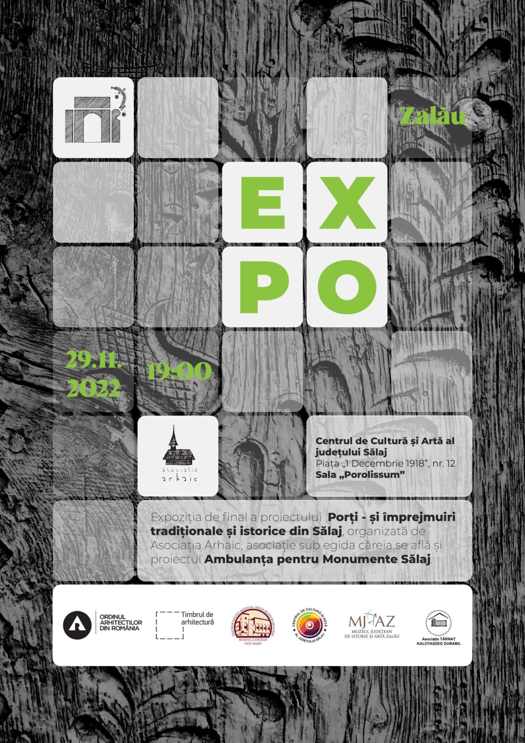 Asociația Arhaic, care derulează proiectul Ambulanța pentru Monumente în județul Sălaj, organizează marți, 29 noiembrie, vernisajul unei expoziții inedite, ce are în prim plan porțile de lemn tradiționale din județ.