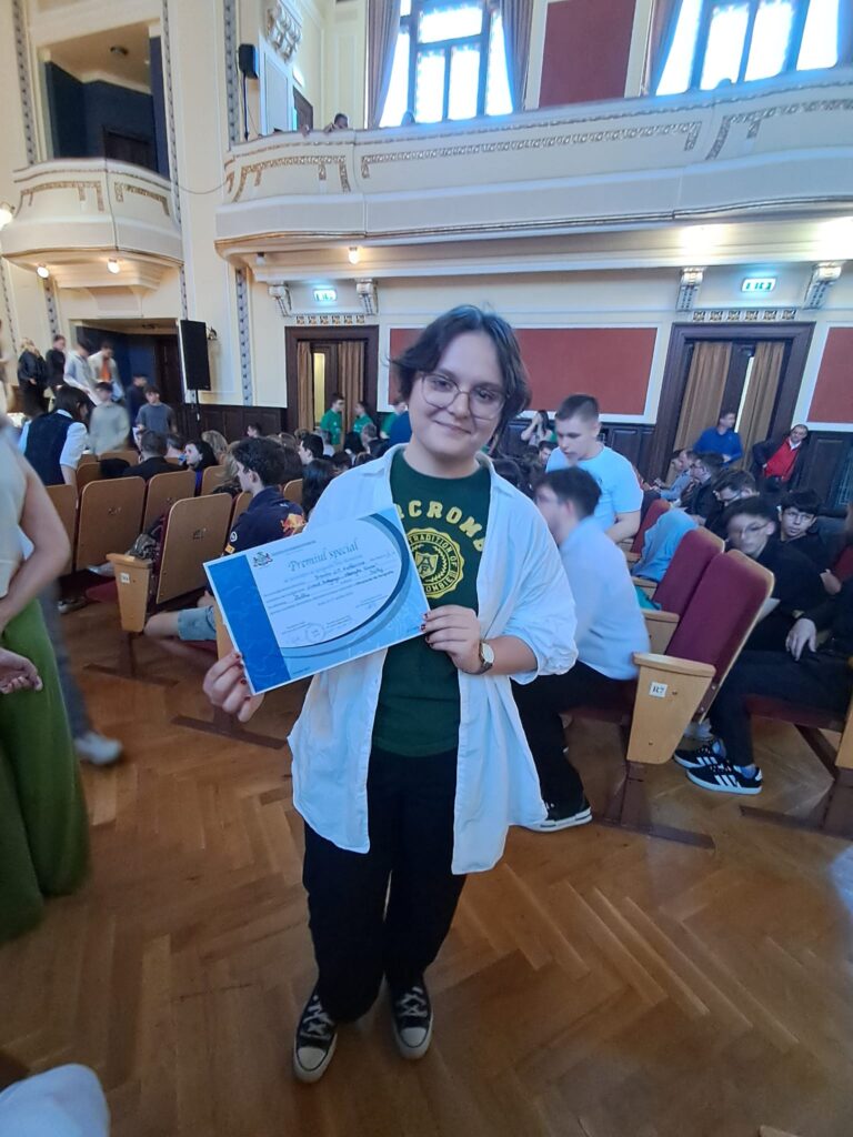 Dintre sălăjeni, Bradin Katherine, clasa a X-a, Liceul Pedagogic „Gheorghe Șincai” Zalău, profesor îndrumător Ciurean Codin, a obţinut un premiu special.