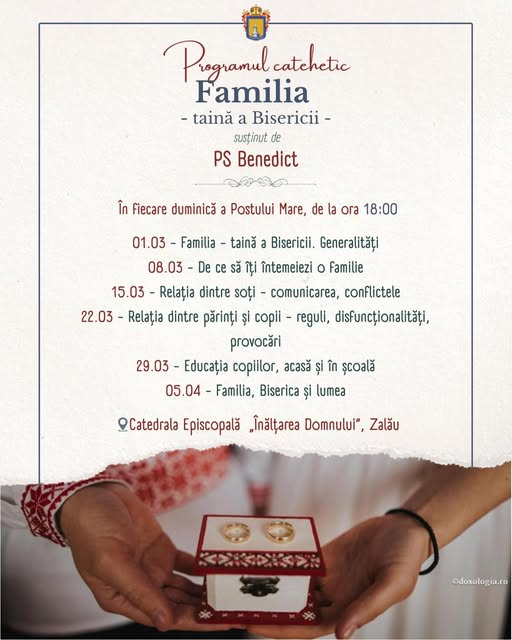 Episcopia Sălajului anunță o inițiativă spirituală dedicată consolidării valorilor familiale în perioada Postului Mare. Sub genericul „Familia – taină a Bisericii”, Preasfințitul Părinte Benedict va susține o serie de întâlniri catehetice menite să ofere repere practice și duhovnicești pentru provocările vieții de familie contemporane.
