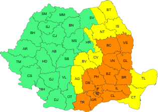 Până în 27 mai, sunt în vigoare coduri galbene și portocalii de precipitații în Muntenia, Dobrogea, cea mai mare parte a Moldovei și în sud-estul și estul Transilvaniei. Vor fi ploi importante cantitativ și se vor acumula 50…70 l/mp și izolat peste 80 l/mp.