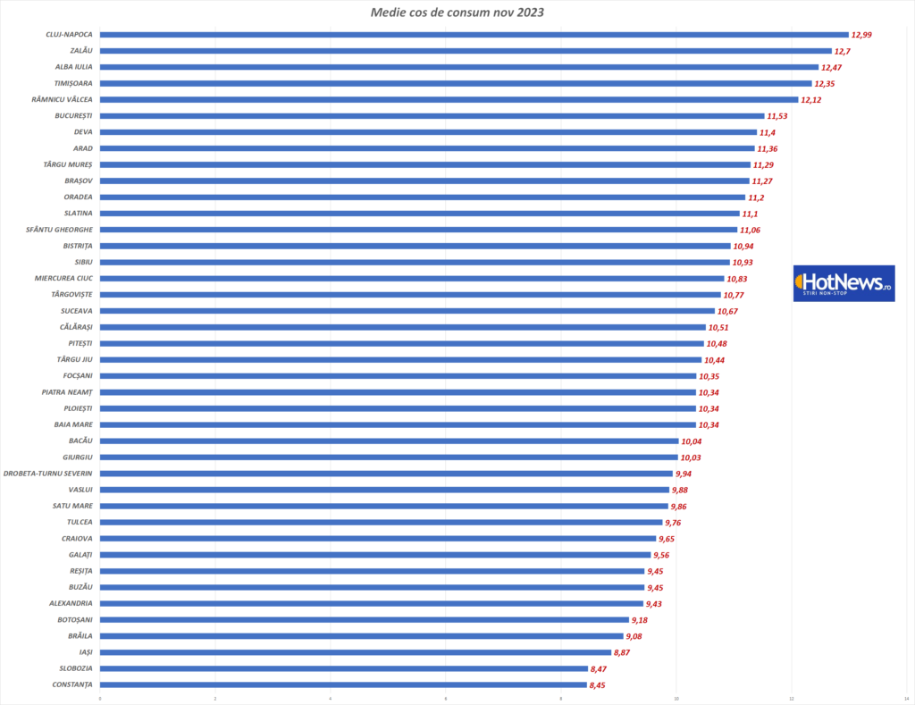 Bucureşti, Cluj-Napoca, Zalău, Alba Iulia şi Timişoara sunt oraşele cu cel mai scump coş alimentar din România, arată o analiză Hotnews realizată în baza datelor furnizate de Institutul Național de Statistică. La polul opus se află Slobozia, Constanţa şi Iaşi.