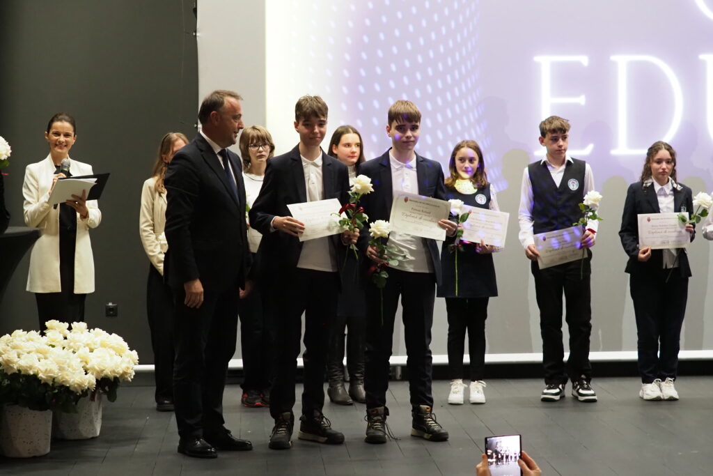 Un număr de 90 de elevi cu rezultate remarcabile la concursuri și olimpiade școlare, de la nivel județean până la cel național, au urcat pe scenă pentru a fi recompensați. Fiecare dintre ei a primit un premiu în bani, un trandafir alb și o diplomă de excelență, înmânate chiar de primarul municipiului, Florin Florian. Valoarea totală a premiilor a fost de 23.750 lei.