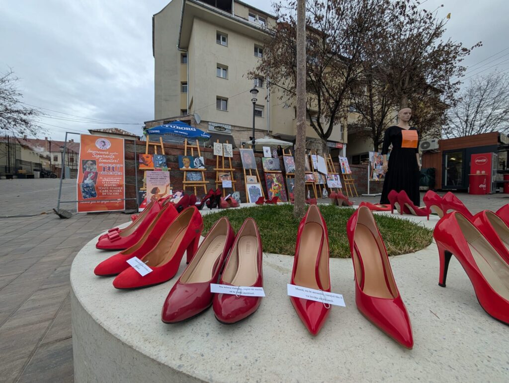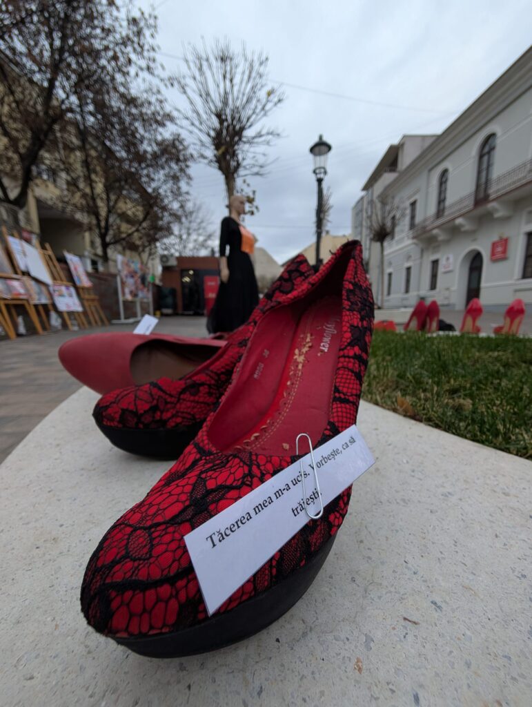 Marșul a fost precedat de o serie de ateliere tematice expuse luni și marți pe zona pietonală. Cel mai emoționant atelier a inclus mai multe perechi de pantofi roșii, un simbol puternic al femeilor care nu mai pot vorbi din cauza violenței, alături de manechine îmbrăcate în negru care purtau povești anonime, dar reale, despre suferință și curaj.