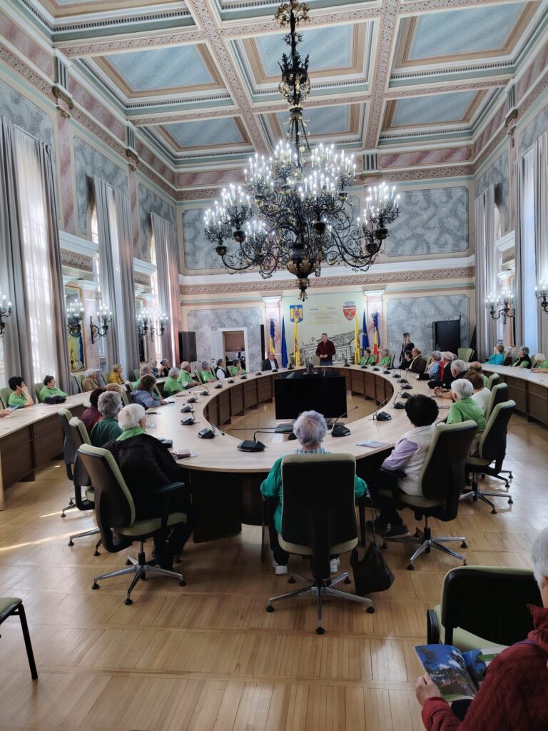 Ziua de 28 mai a început cu o vizită la Primăria Municipiului Zalău, unde grupul de seniori a fost întâmpinat de viceprimarii Călin Cristian Forț și Nicolae Fazakas, alături de consilierul local Bako Andrei. Oaspeții au vizitat sala mare de ședințe a Primăriei Municipiului Zalău și sala de căsătorii și au aflat informații interesante despre istoria clădirii administrative și despre proiectele de dezvoltare urbană ale orașului.