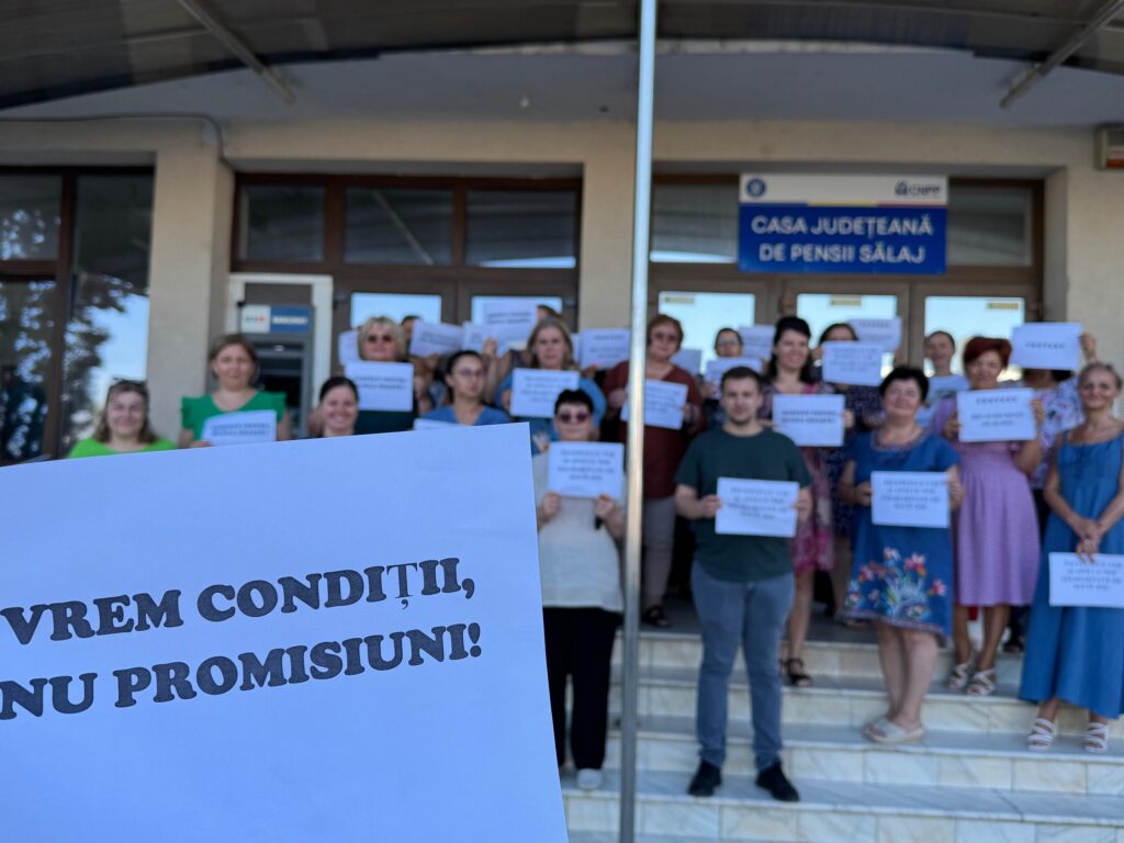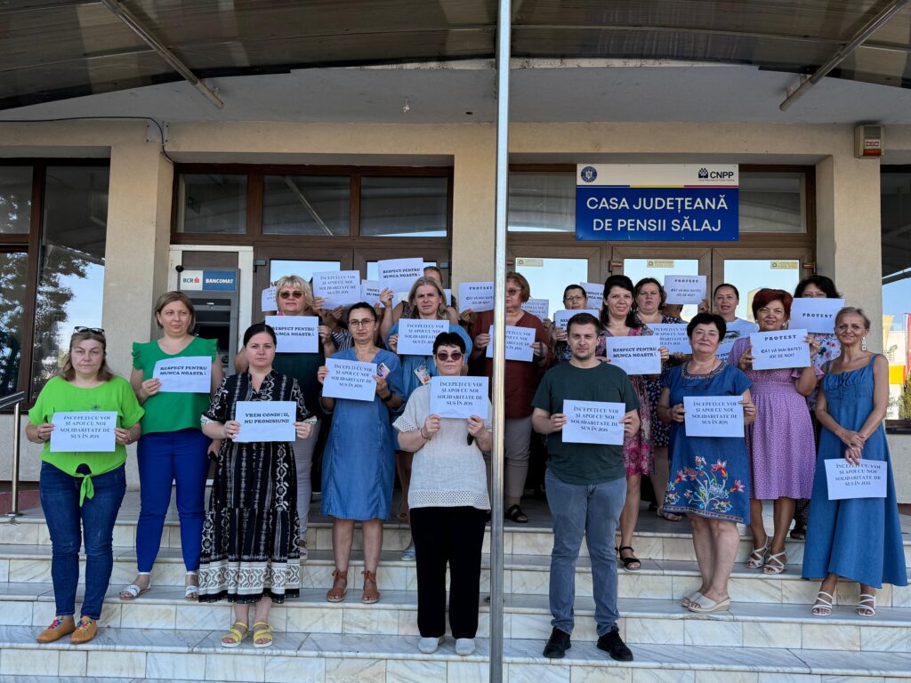 Angajații Casei de Pensii Sălaj continuă seria protestelor. Pentru a treia zi, oamenii au ieșit în stradă, nemulțumiți de măsurile adoptate de Executiv, în urma cărora veniturile lor vor fi diminuate.