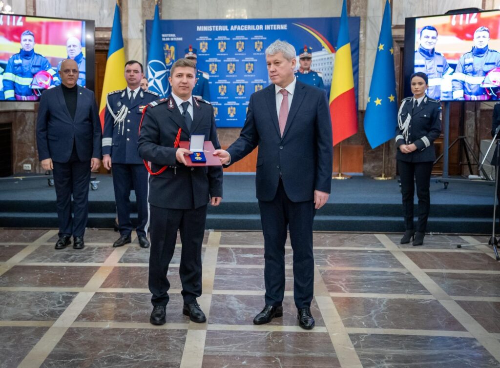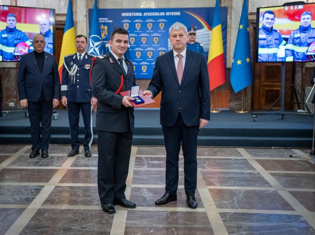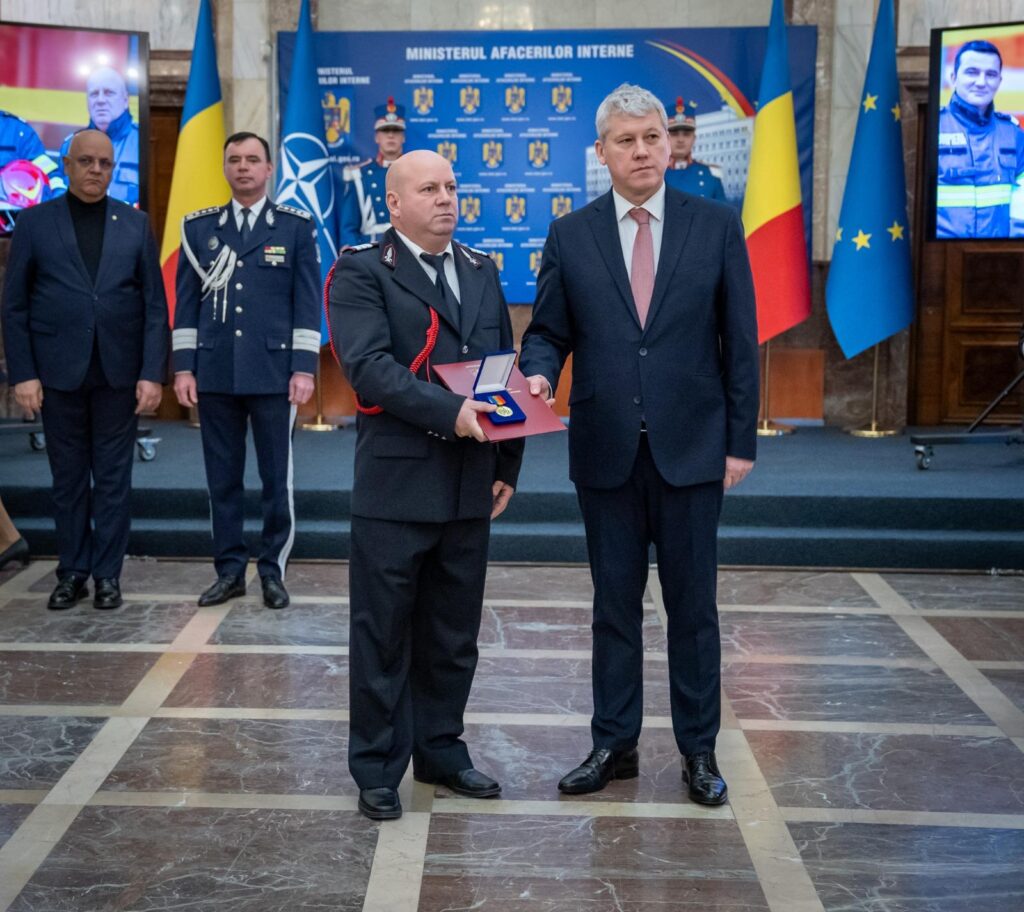”Celor trei pompieri sălăjeni invitați la eveniment, plutonierului adjutant Ceteraș Marius, plutonierului major Terec Iosif și plutonierului Romitan Daniel, în semn de apreciere, domnul ministru Marian-Cătălin PREDOIU le-a acordat Emblema de onoare a Ministerului Afacerilor Interne. Colegii noștri, aflându-se în timpul liber, au intervenit la data de 21 august și au acordat îngrijiri medicale unei persoane care a fost rănită și blocată într-un autoturism în urma unui eveniment rutier petrecut în apropierea localității Jibou până la sosirea echipajelor de intervenție. Felicitări, dragi colegi! Vă dorim cât mai multe misiuni încheiate cu succes!”, transmit reprezentanții ISU ”Porolissum” al Județului Sălaj.