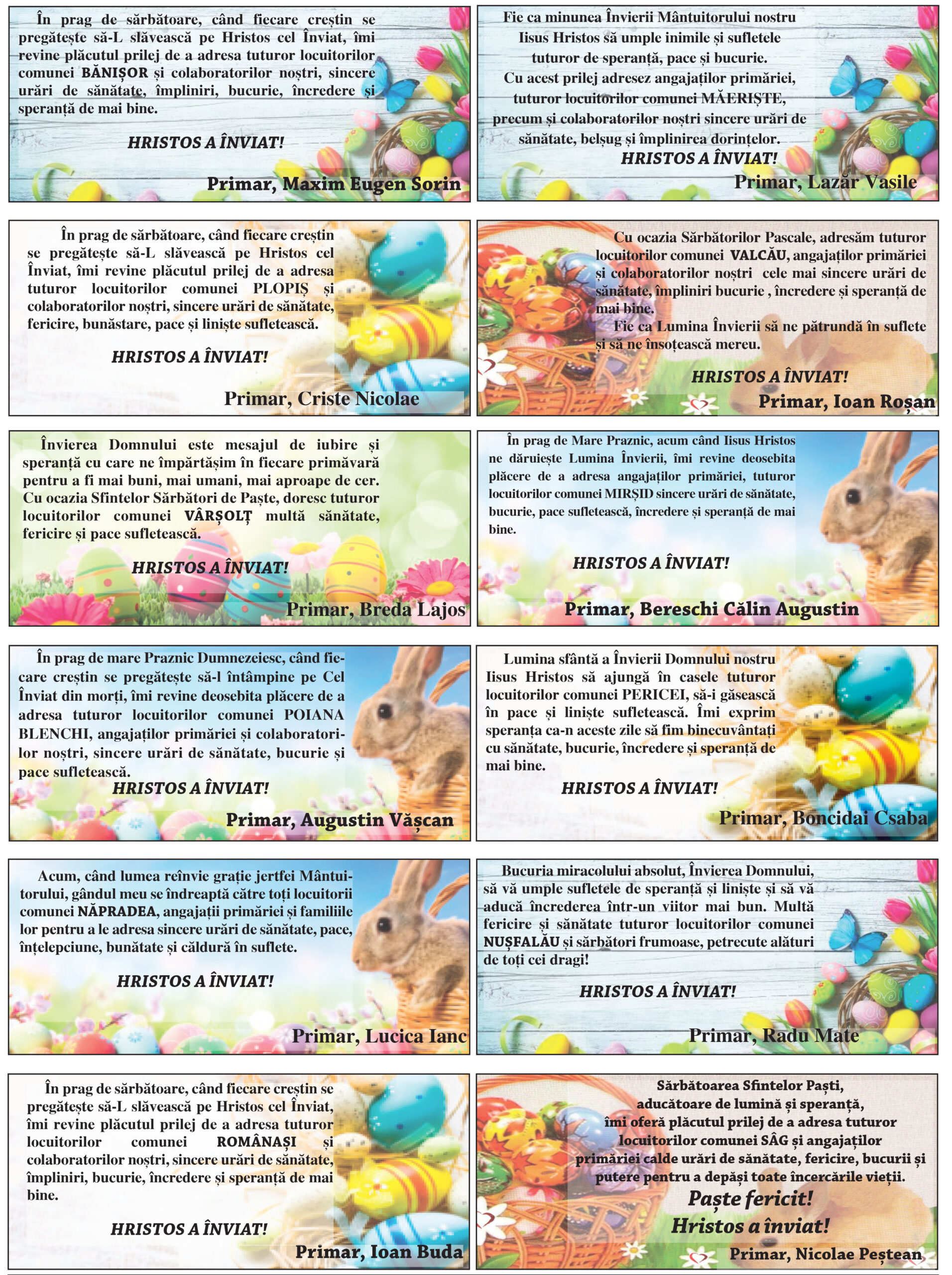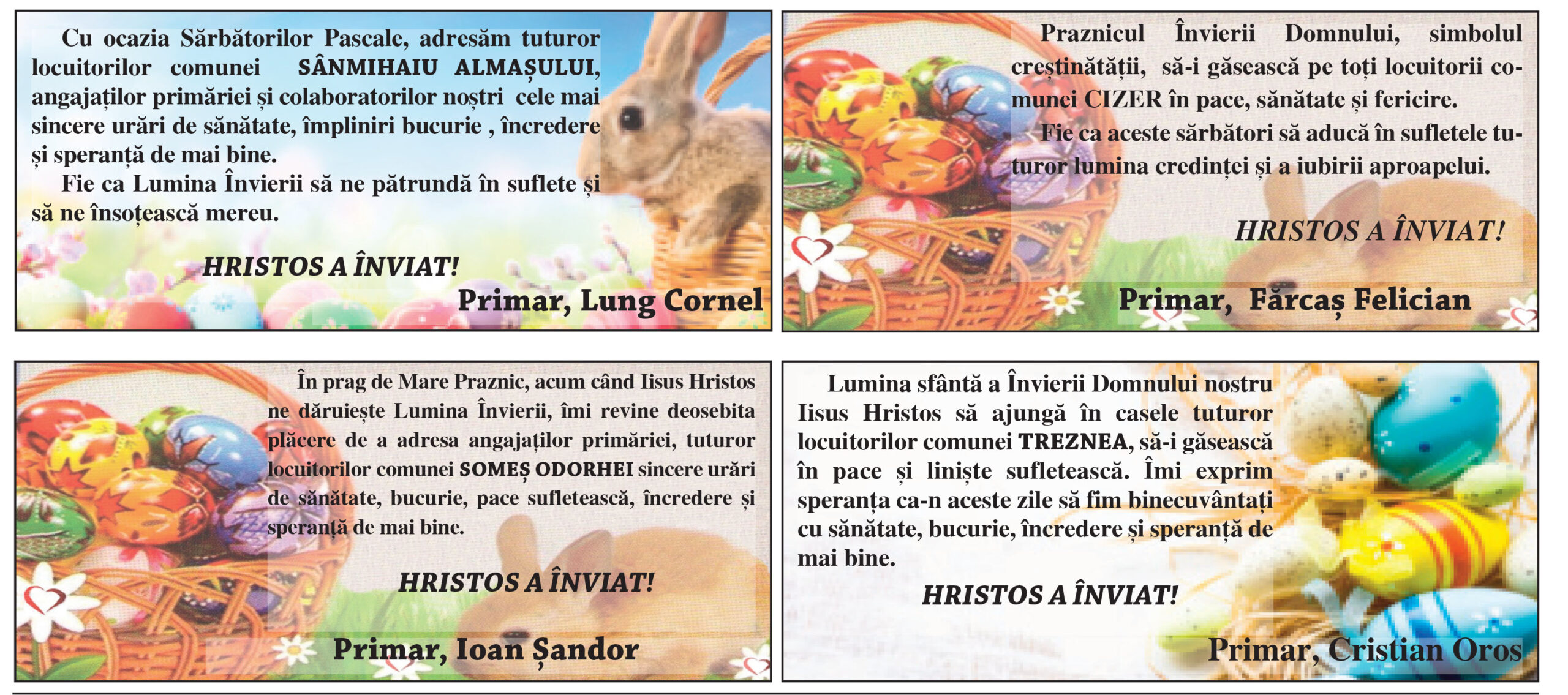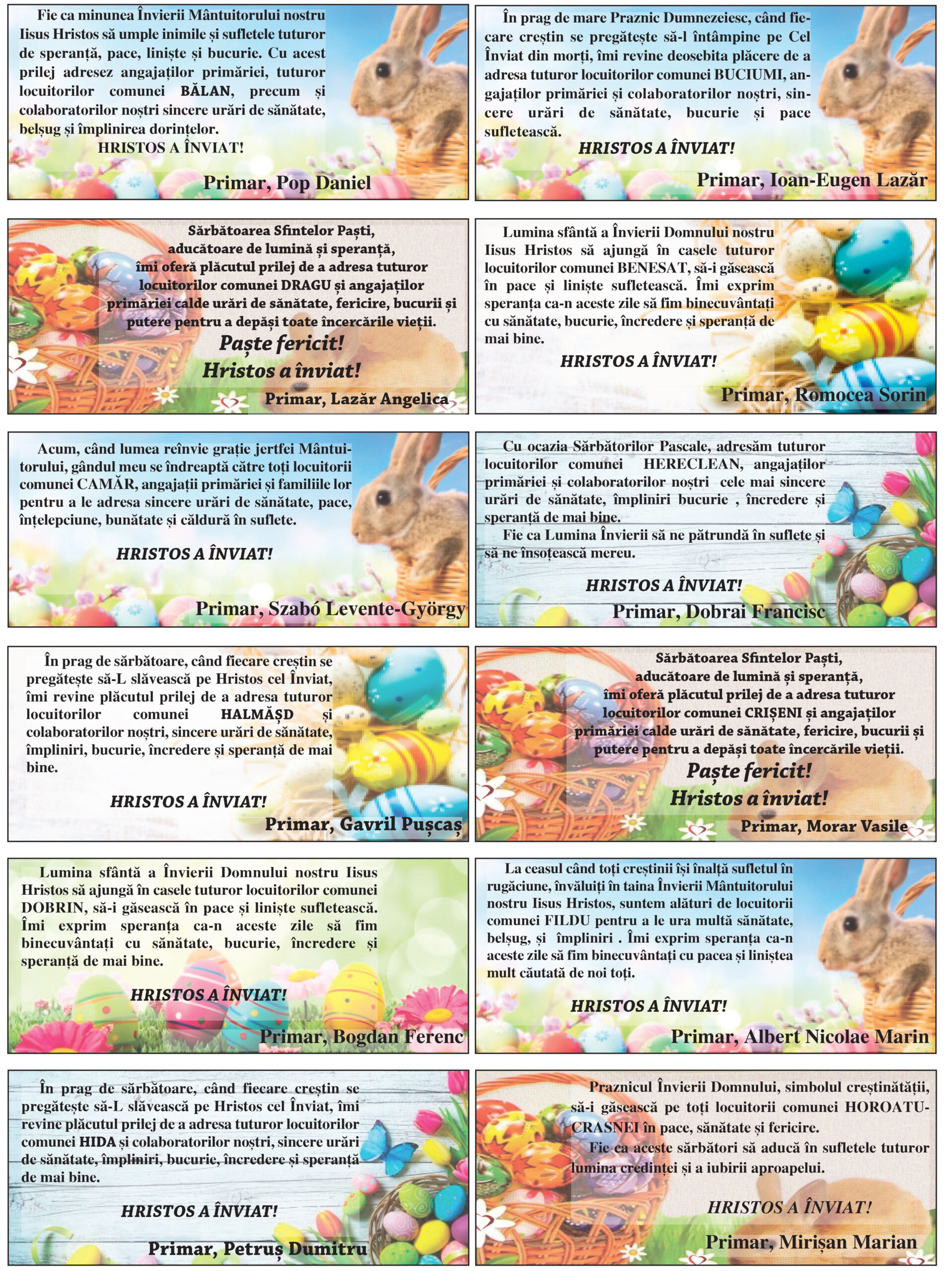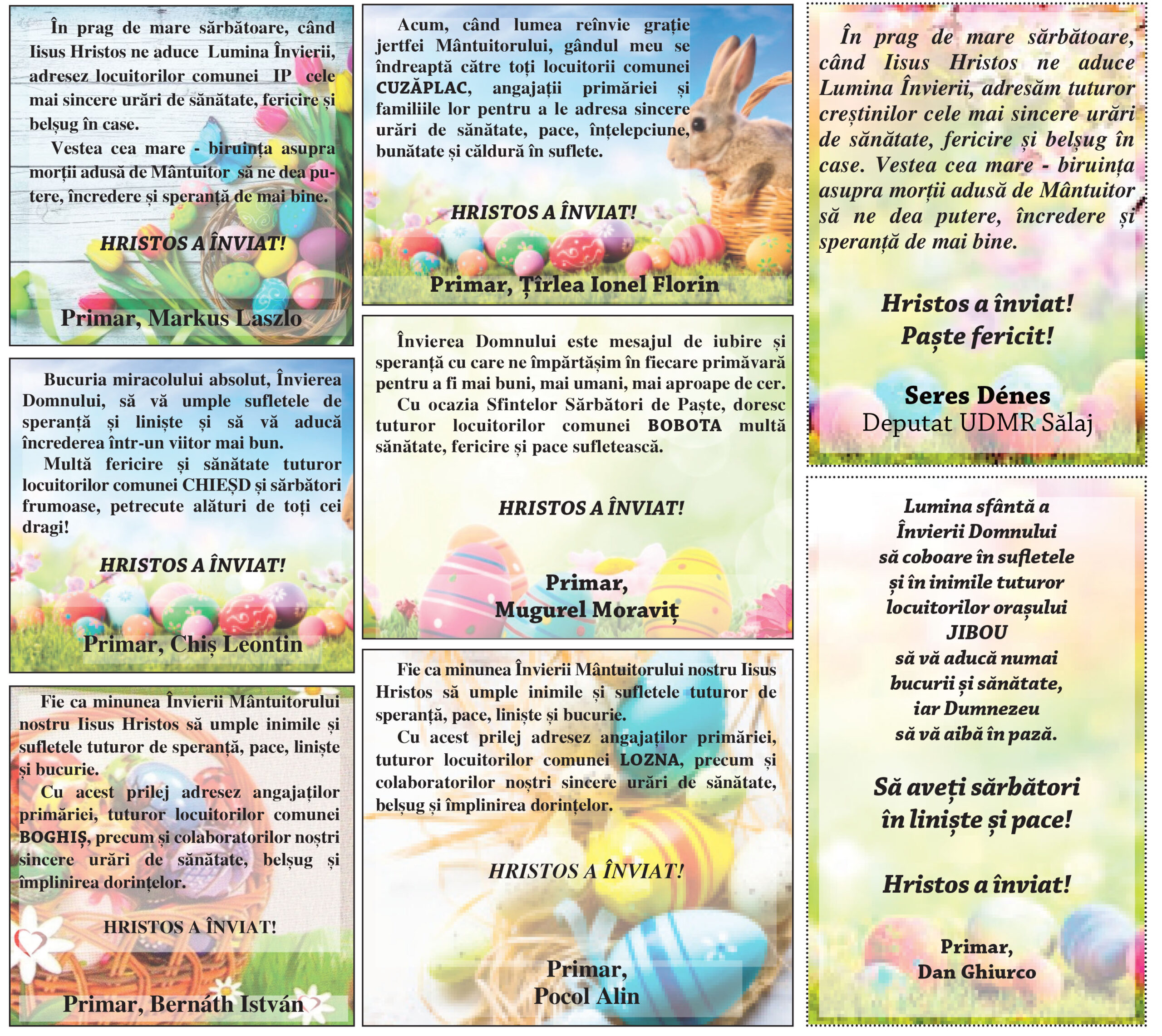 Actualitate Featured Mesaje de la oficialii sălăjeni. Sărbători fericite! Redacția aprilie 17, 2025 Post Views: 61 Share Messenger Whatsapp Post navigation Previous: Ce ocupaţie şi ce profesie au candidaţii la funcţia de primar al municipiului ZalăuNext: Sincere condoleanțe… Mai multe… Actualitate Featured Politica - administratie Ilie Bolojan: În 2027, avem continuitate pe A3, dar fără Tunelul Meseș Alina Rad decembrie 14, 2025 Actualitate Featured Social Magistrații din Sălaj care spun NU presiunilor din justiție. Cine apare pe listă? Redacția decembrie 14, 2025 Cultura Featured Social Provocări și interogații, la conferința Preasfințitului Benedict: Ce înseamnă pentru voi o viață mare? Ioana Deac decembrie 13, 2025