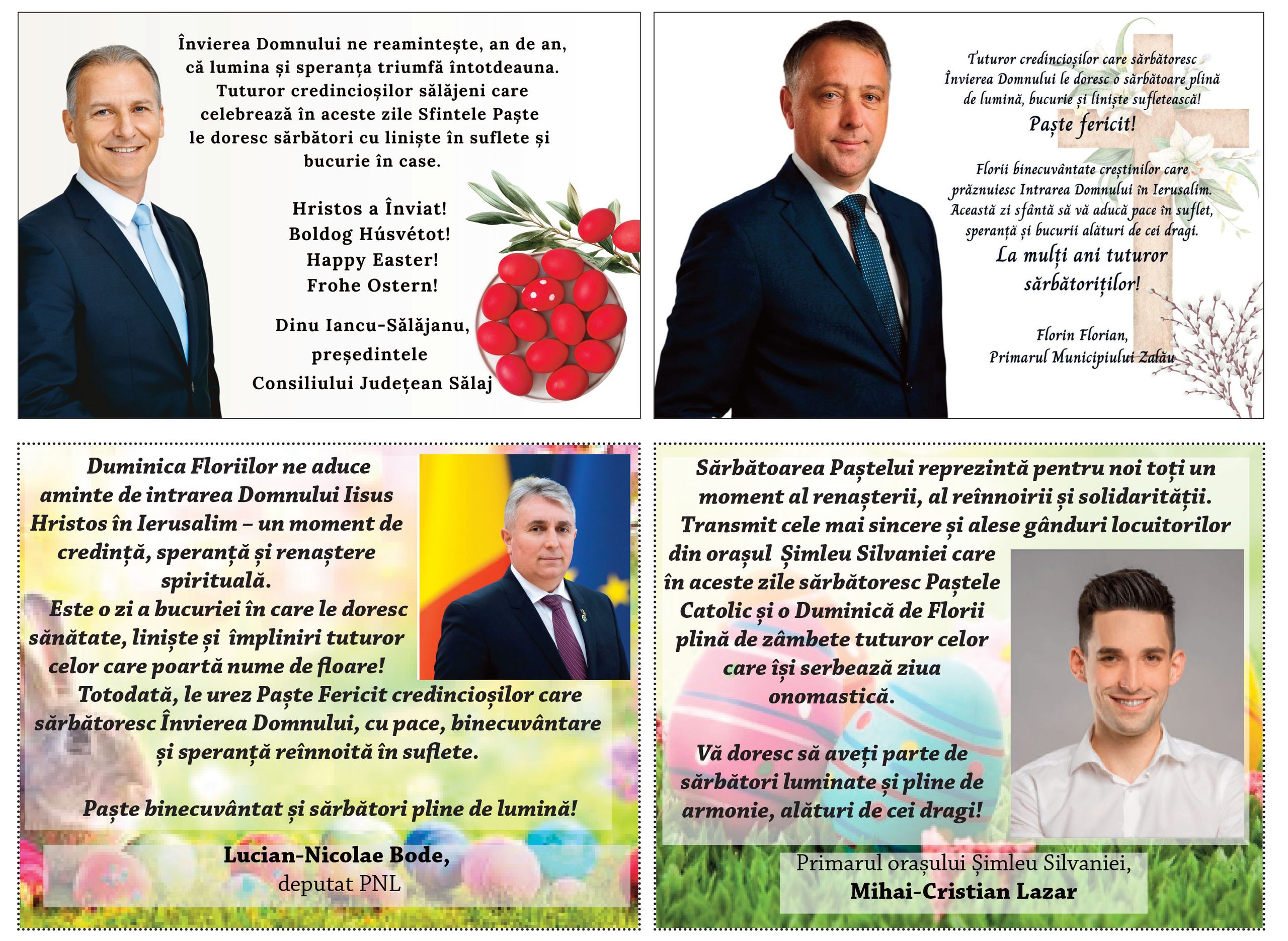 Actualitate Mesaje de la oficialii sălăjeni. Sărbători fericite! Redacția aprilie 4, 2026 Post Views: 2 Share Messenger Whatsapp Post navigation Previous: SCM Zalău aduce un punct din prima deplasare a play-off-ului Mai multe… Actualitate Eveniment Featured Sărbătoare a Jandarmeriei: Avansări în grad și distincții la împlinirea a 176 de ani de la înființarea instituției S. Olaru aprilie 3, 2026 Actualitate Featured Povestea celor cinci cățeluși care au schimbat „Săptămâna Verde” într-o lecție de neuitat la CNS Zalău Alina Rad aprilie 3, 2026 Actualitate Featured Utilizatorii de trotinete, în atenţia poliţiştilor S. Olaru aprilie 3, 2026 Lasă un răspuns Anulează răspunsulAdresa ta de email nu va fi publicată. Câmpurile obligatorii sunt marcate cu *Comentariu * Nume Email Site web Salvează-mi numele, emailul și site-ul web în acest navigator pentru data viitoare când o să comentez. Δ