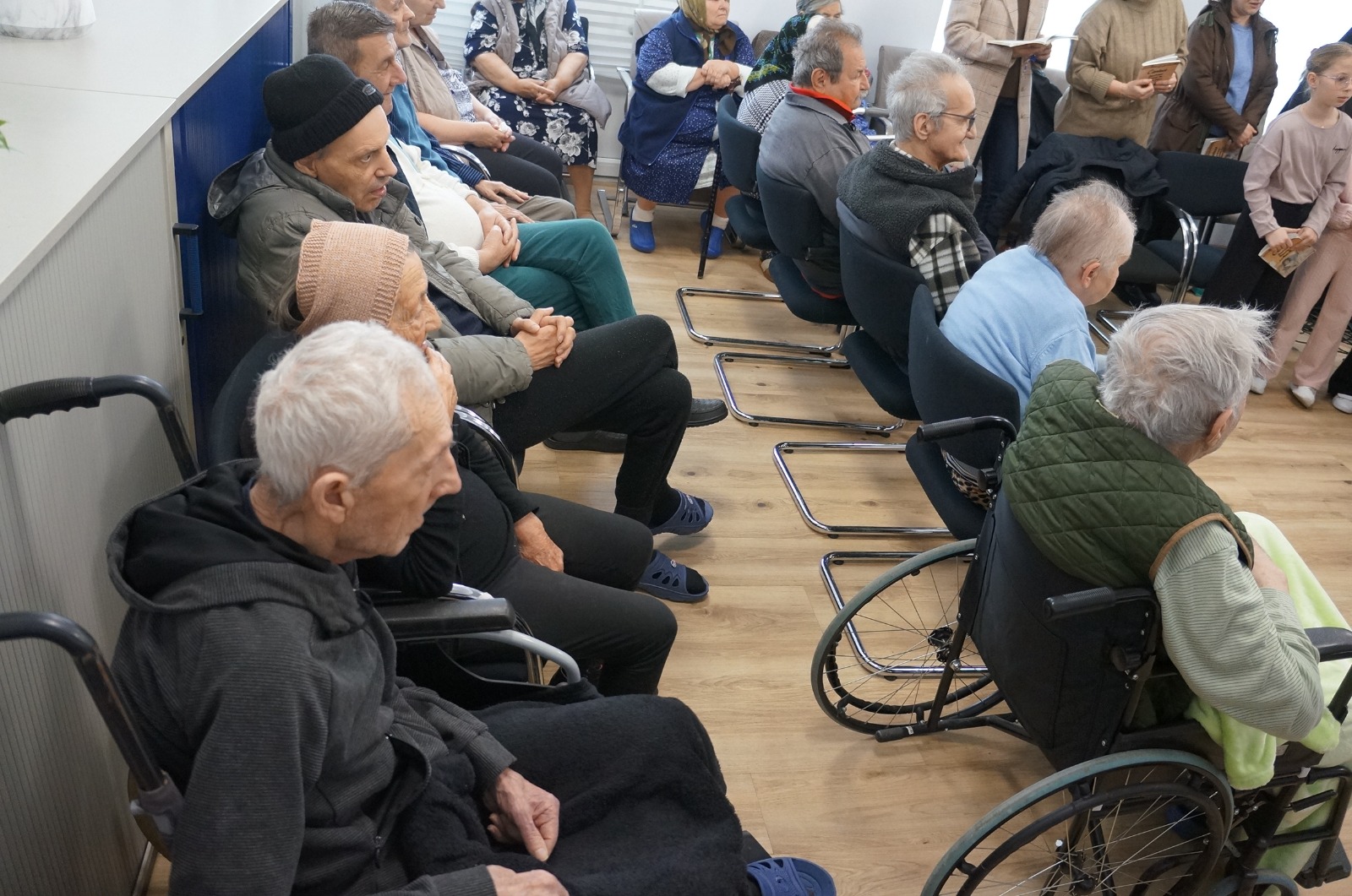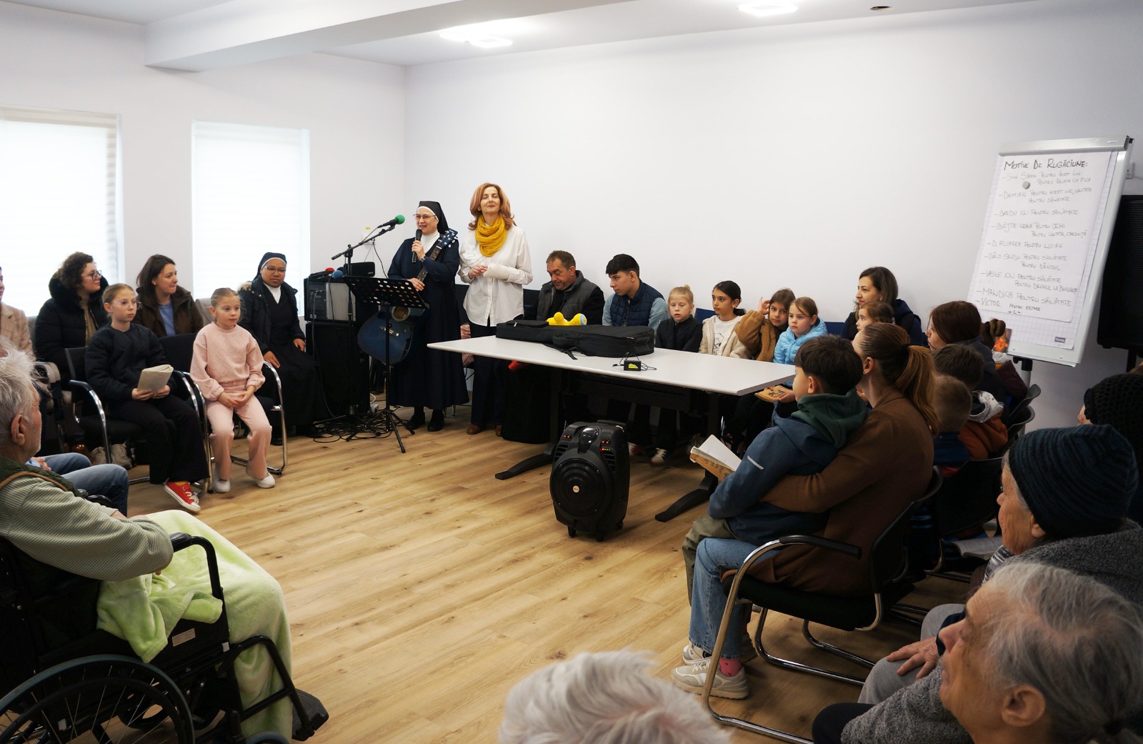 Unui astfel de univers, greu de formulat, i-am trecut pragul sâmbăta trecută, împreună cu colectivul Mănăstirii Preasfintei Inimi a lui Isus: Centrul de vârstnici de la Tihău. Primiți cu căldură de personalul Centrului și intrând în încăperea unde se aflau vârstnicii, om să fii și nu aveai cum să nu simți ”greutatea” locului. Un buchet de bunici ne așteptaseră cu sufletul la gură, cu entuziasm de copii și cu o poftă vădită pentru dialog și prietenie însuflețită.