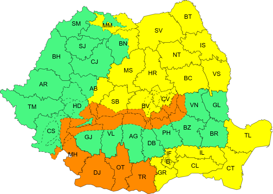 Administrația Națională de Meteorologie a emis noi avertizări de coduri galbene și portocalii, valabile până vineri, 9 ianuarie, ora 15:00, care vizează precipitații predominant sub formă de ninsoare, strat de zăpadă, polei, intensificări ale vântului, vreme rece și ger, fenomene care îngreunează circulația rutieră.