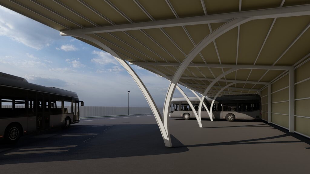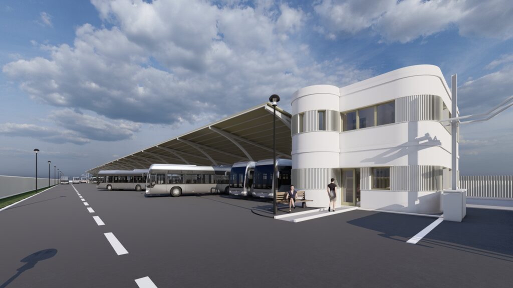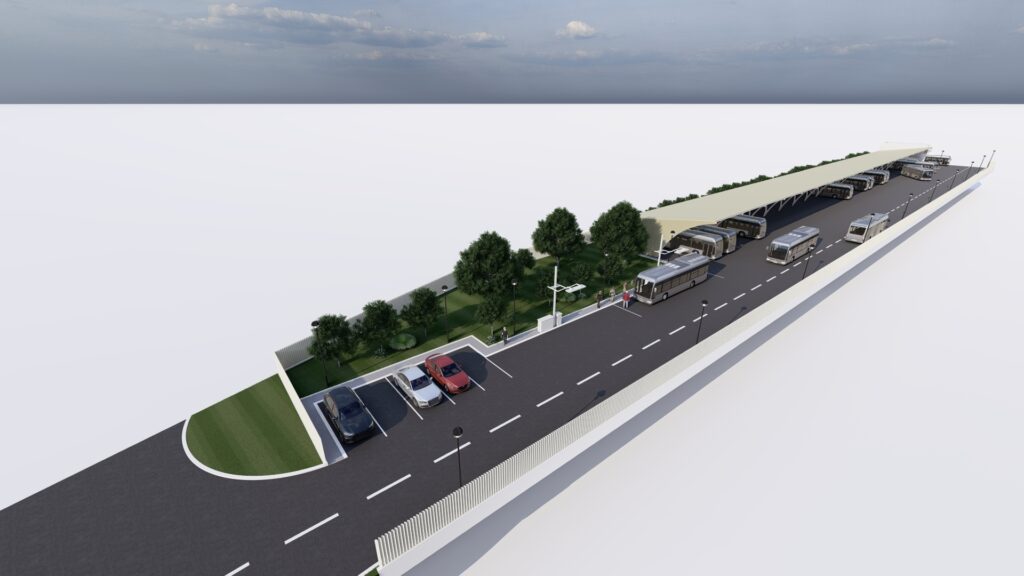 Proiectul prevede împrejmuirea terenului, realizarea de copertine, construirea unei clădiri pentru dispecerat și amenajarea stațiilor de încărcare.