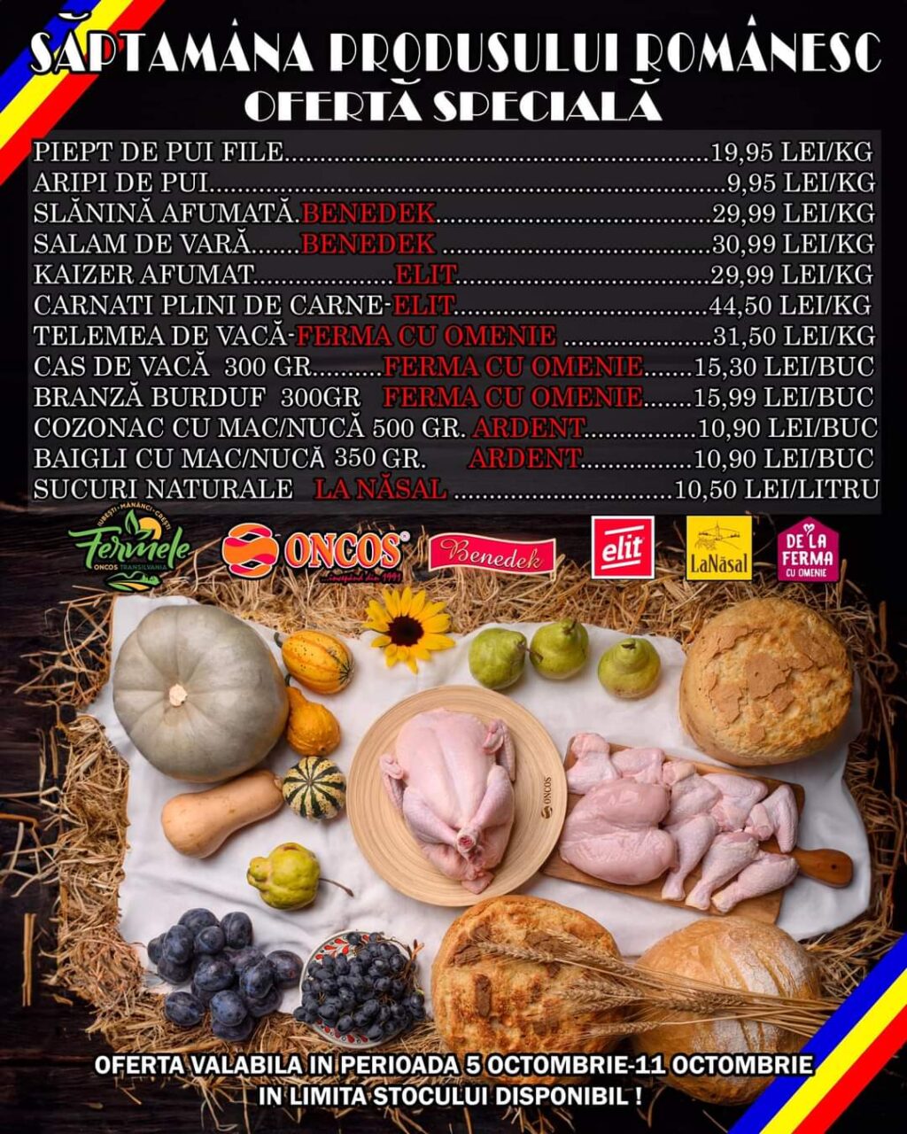 Se apropie cu pași repezi Ziua Națională a Produselor Agroalimentare Românești, și cu această ocazie, suntem bucuroși să vă anunțăm că, începând din data de 5 Octombrie până în data de 11 Octombrie, avem reduceri de prețuri la o gamă variată de produse în toată rețeaua de magazine Oncos.