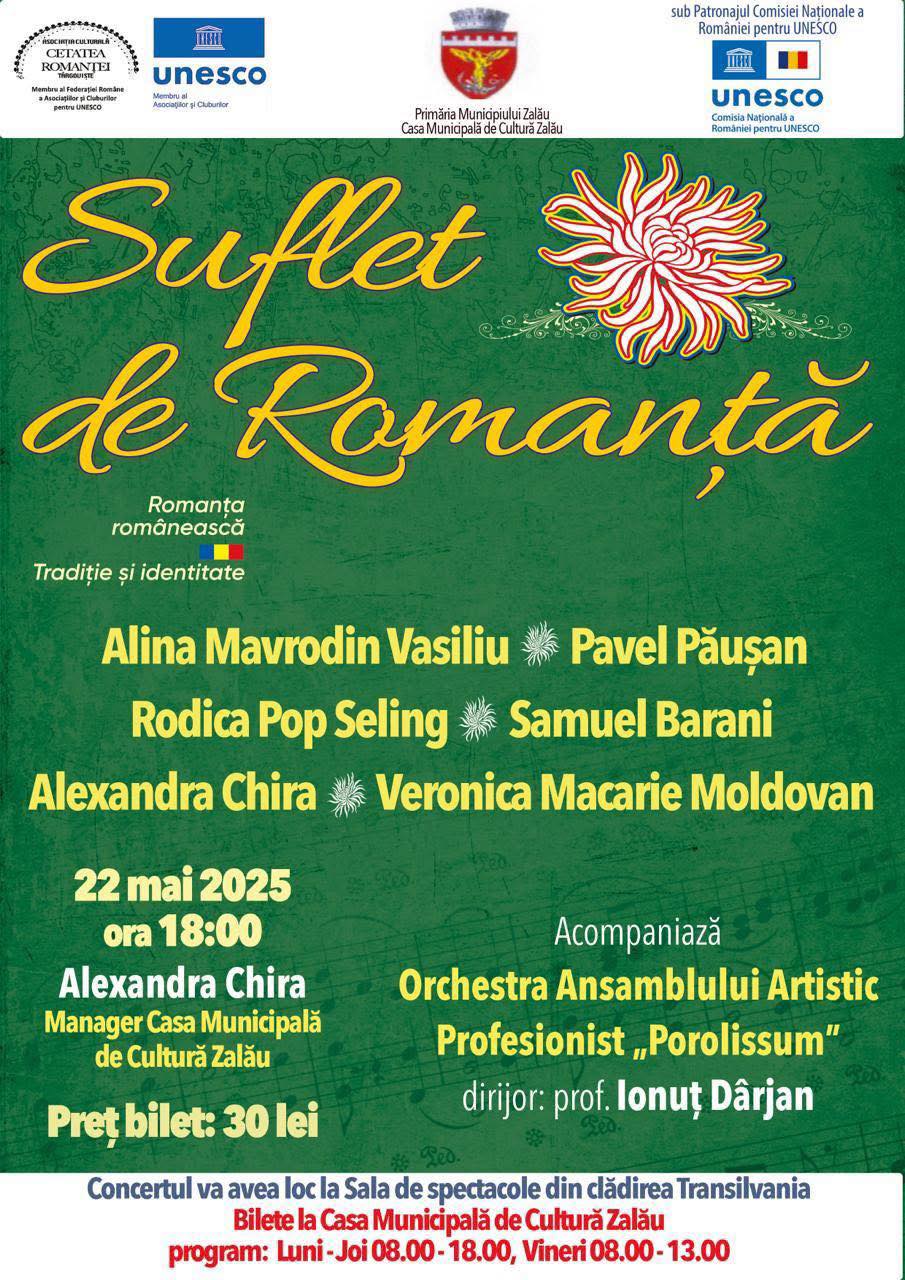 Sala de spectacole din clădirea Transilvania va găzdui joi, 22 mai, de la ora 18:00, un regal muzical dedicat romanței românești – „Suflet de Romanță”.