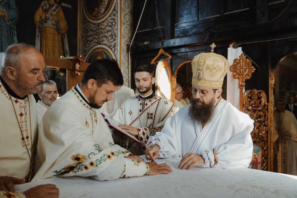 Organizatorii au pregătit în curtea bisericii o scenă pe care evenimentul a continuat cu Sfânta Liturghie, la finalul căreia preotul paroh Emil Traian Nechita a fost hirotesit iconom stavrofor de către Preasfințitul Părinte Benedict.