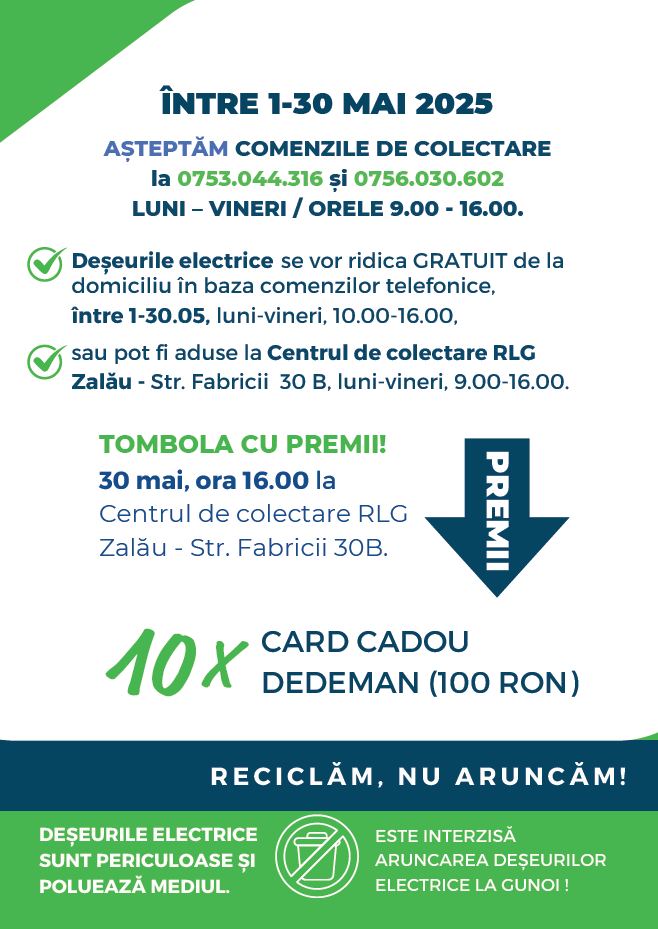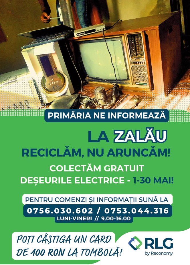Primăria Municipiului Zalău a încehiat un protocol de colaborare cu SC RLG Systems România SRL, SC RLG Rebal România SRL și SC RLG Waste Management Systems România SRL, în vederea derulării unor campanii de colectare deșeuri de echipamente electrice.