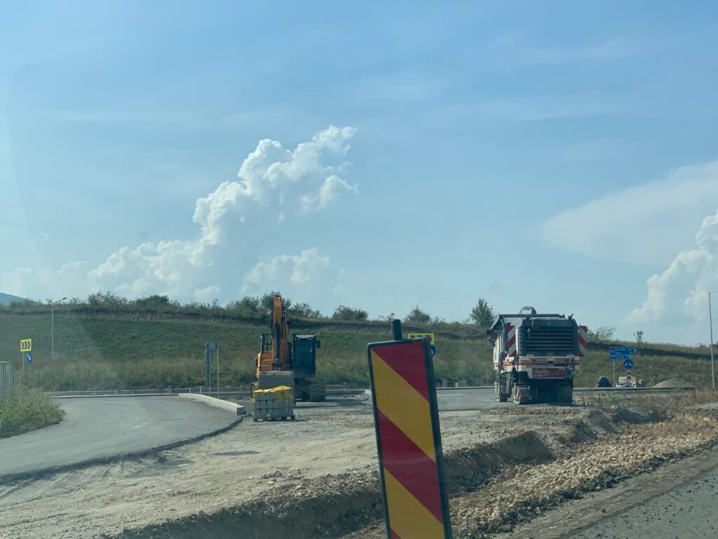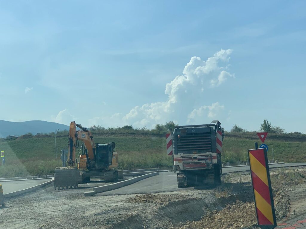 Se lucrează la giratoriul șoselei de centură. Se circulă intermitent