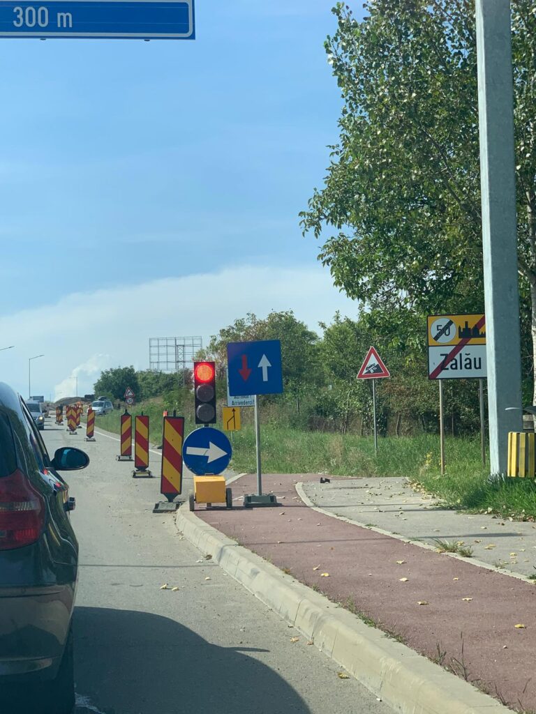 La ieșirea din Zalău spre Aghireș, în vârful dealului, acolo unde va exista un sens giratoriu, circulația se desfășoară în aceste zile intermitent, în zonă fiind montate semafoare.