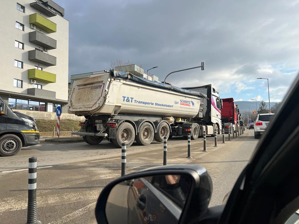 Coloana de camioane și tractoare străbate municipiul de la un capăt la altul, motiv pentru care traficul este îngreunat pe alocuri, cu precădere pe străzile Kossuth, Gheorghe Lazăr și Tudor Vladimirescu. Claxoanele acestora se aud în întreg orașul.