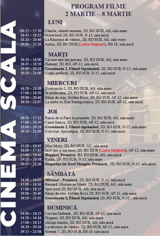 În medie, aproximativ 132 de persoane au trecut zilnic pragul Cinema Scala de la redeschiderea sa, în 24 februarie 2023, până în prezent. Este un indicator clar că cinematograful a redevenit un punct de atracție pentru iubitorii de filme din tot județul.