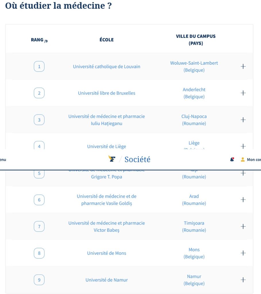 În cadrul studiului, Universitatea de Medicină și Farmacie „Iuliu Hațieganu” din Cluj-Napoca este prezentată drept cea mai prestigioasă instituție românească care oferă programe de studii medicale în limba franceză. Potrivit Le Figaro, universitatea clujeană reprezintă „cel mai bun compromis între calitatea formării, reputația internațională și oportunitățile academice” pentru studenții francezi.