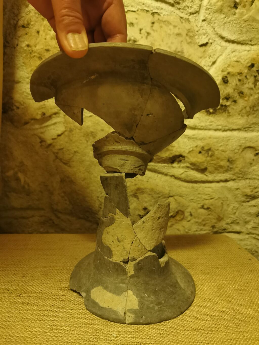 Cele două fragmente expuse nu provin de la același vas.