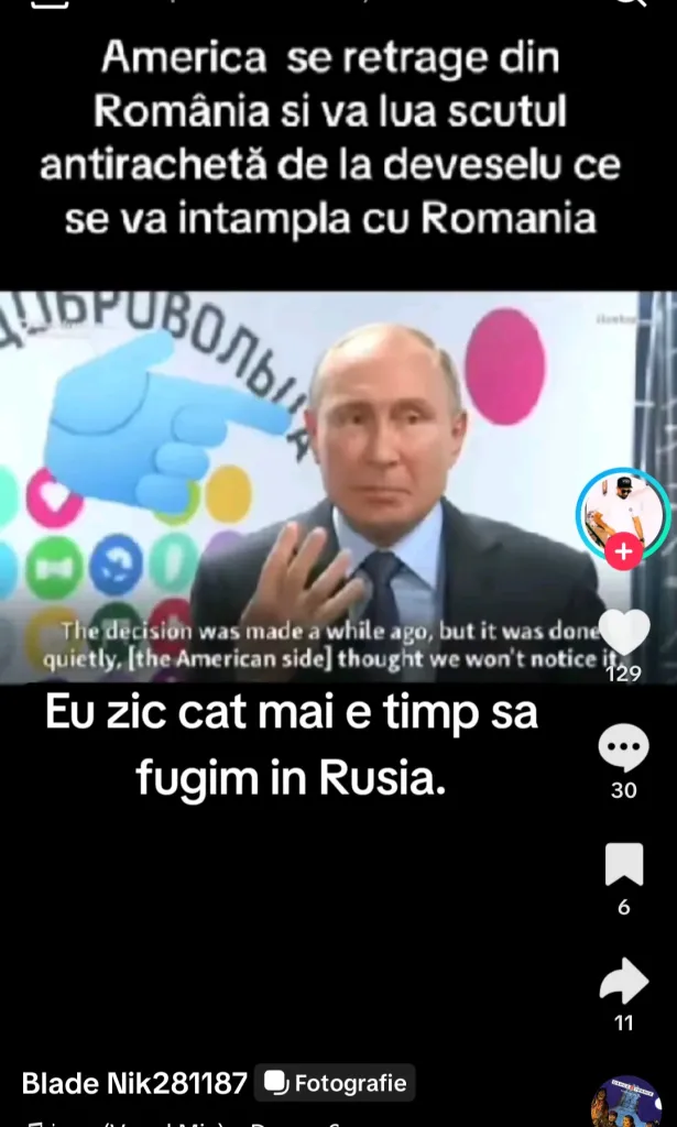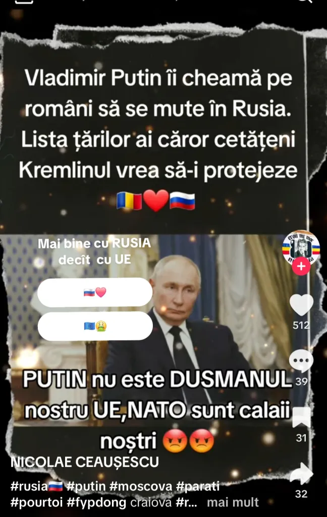 Pe TikTok, platforma preferată a tinerilor, a apărut un fenomen care a atras atenția autorităților: tot mai multe videoclipuri în limba română promovează deschis armata lui Vladimir Putin. Deghizate în mesaje „ironice” sau „glume patriotice”, aceste clipuri folosesc simboluri sovietice, cântece militare și sloganuri pro-ruse susține ziare.com.