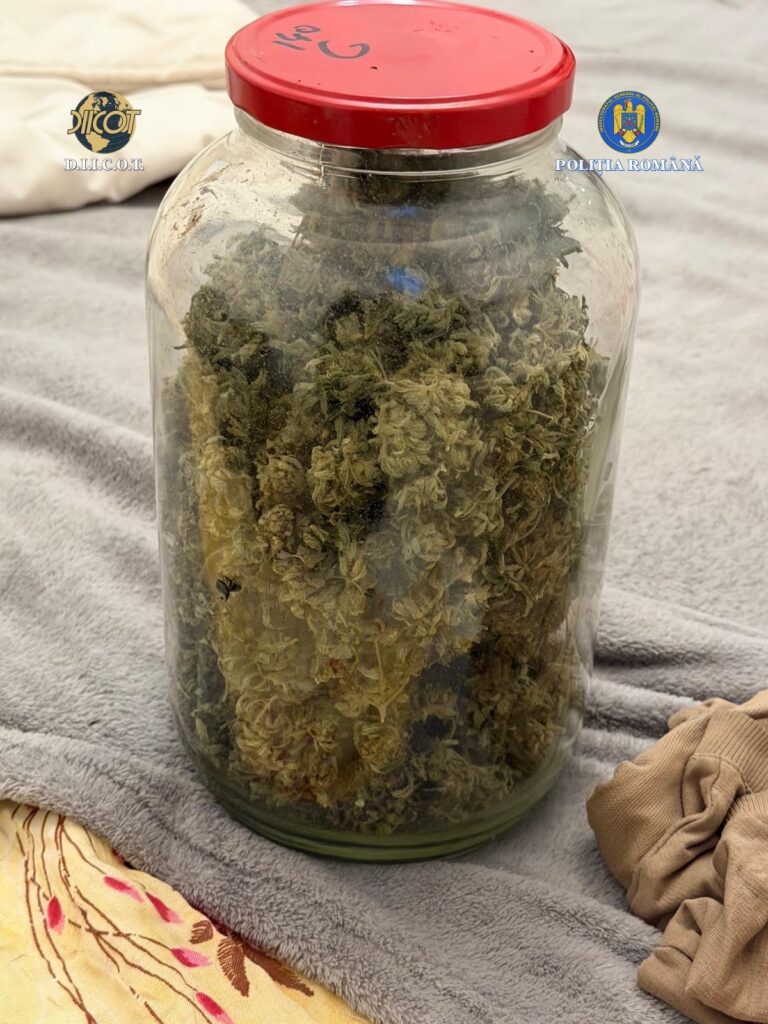 Anchetatorii mai arată că, în încercarea de a împiedica desfășurarea cercetărilor, bărbatul a aruncat pe geam un borcan cu canabis, recuperat ulterior de polițiștii aflați în exteriorul imobilului.