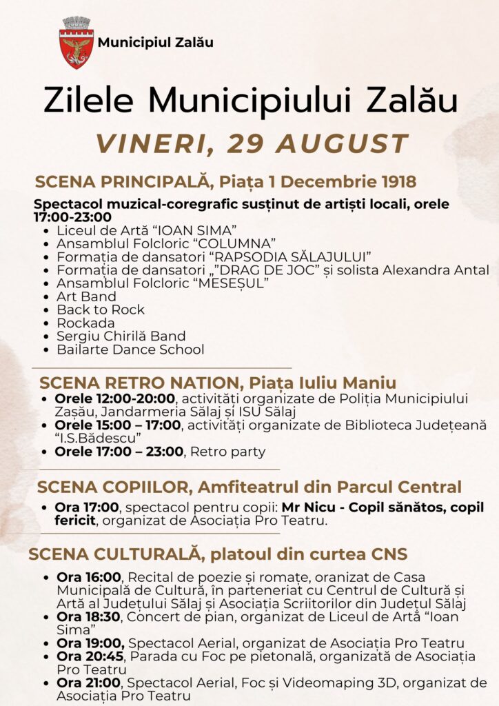 În perioada 29 – 31 august 2025, Zalăul devine epicentrul distracției, găzduind cel mai așteptat eveniment al anului – Zilele Municipiului.