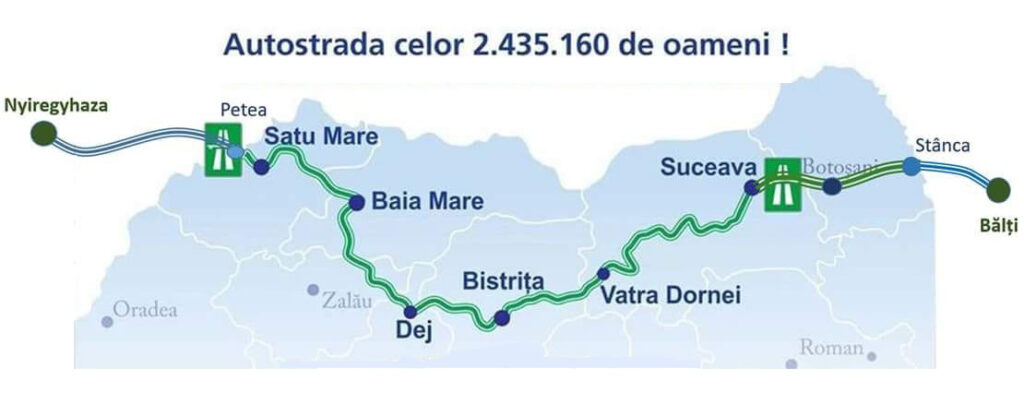 Drumul de mare viteză Baia Mare – Suceava are o lungime de peste 300 de kilometri și include trei loturi: Baia Mare – Dej – Bistrița (145 km), Bistrița – Vatra Dornei (63 km) și Vatra Dornei – Suceava (107 km).