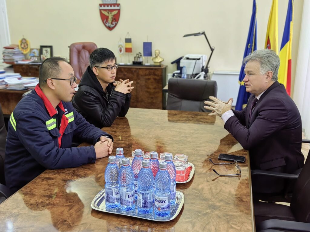 ”Am avut o întâlnire cu domnii Li HuQiang, manager de proiect și Fan Xiaohi, traducător, reprezentanții antreprenorului care lucrează la Varianta de ocolire a municipiului Zalău. Am evoluat stadiul lucrărilor și a fost prezentat un calendar privind evoluția proiectului. Astăzi procentul de realizare este de 35 la sută, antreprenorul apreciind că anul viitor proiectul va fi finalizat. Având în vedere că este un proiect extrem de important pentru comunitate noastră, am arătat încă o dată disponibilitate de a da tot sprijinul ca lucrările să evolueze într-un sens pozitiv”, a declarat Ionel Ciunt, primarul municipiului Zalău, după întâlnire.