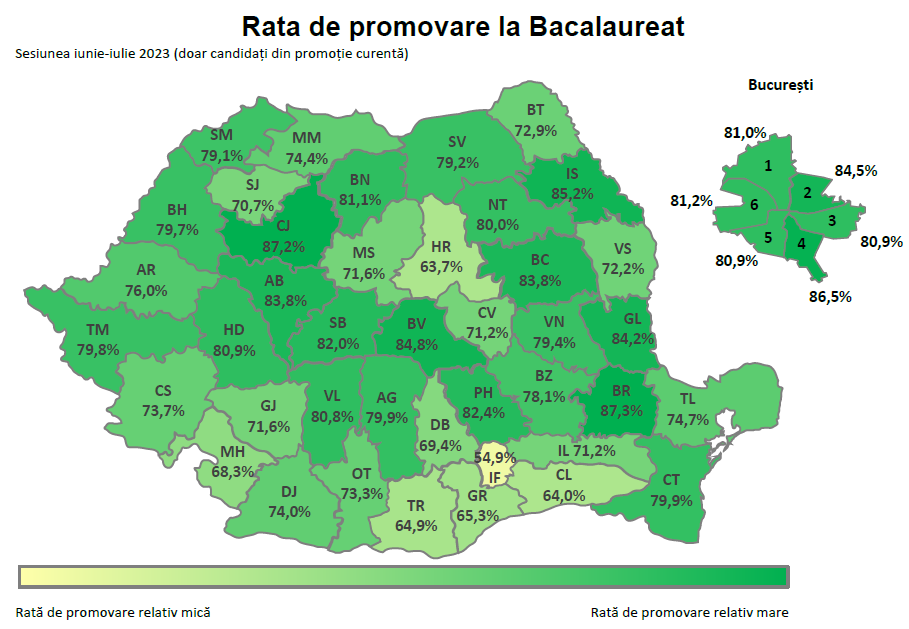 La nivelul județului Sălaj, rata de promovare la examenul de Bacalaureat este de 70,7 la sută. Procentul este mai mic decât media pe țară, care este de 72,8% anul acesta.