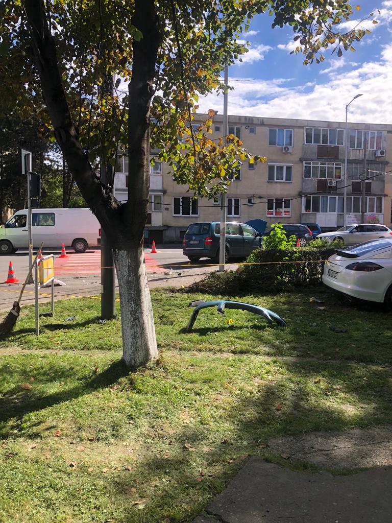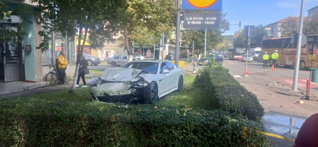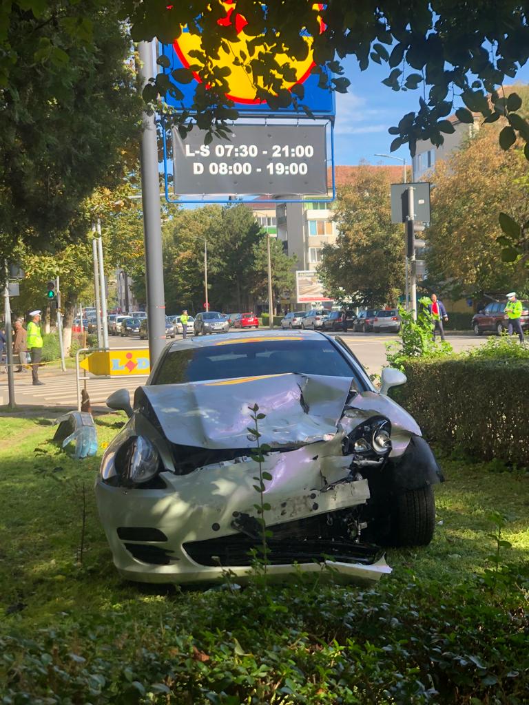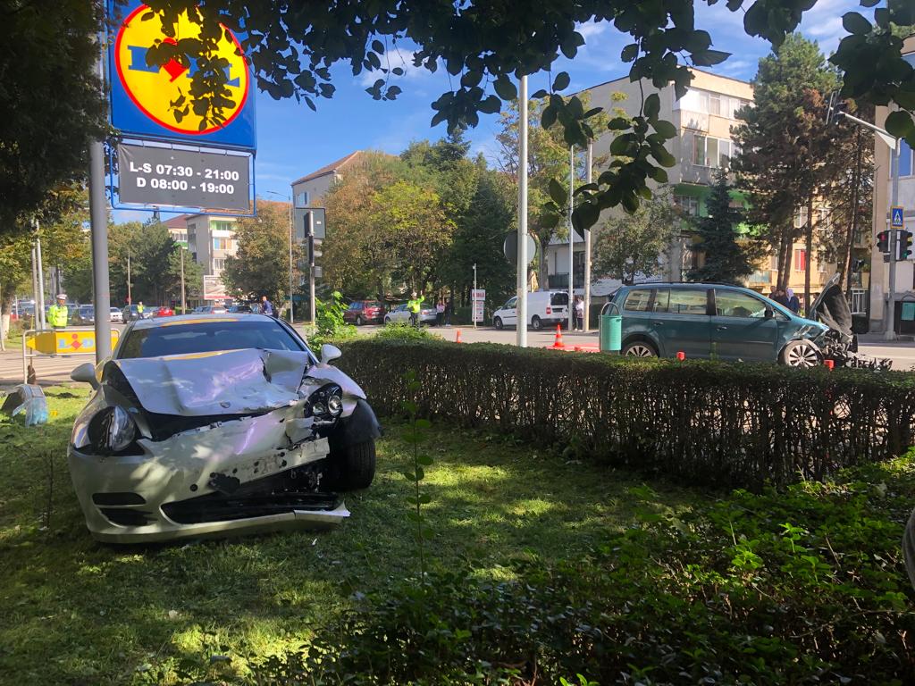 Impactul a avut loc între un autoturism Porsche și un autoturism Volkswagen Touran. Cauza accidentului a fost neacordarea de prioritate. Au fost rănite două persoane, șoferița autoturismului Volkswagen, care ieșea din parcarea de la Lidl, în vârstă de 49 de ani, și o persoană aflată pe trotuar, în vârstă de 62 de ani, lovită de o bucată desprinsă dintr-unul dintre autoturisme, în urma impactului.