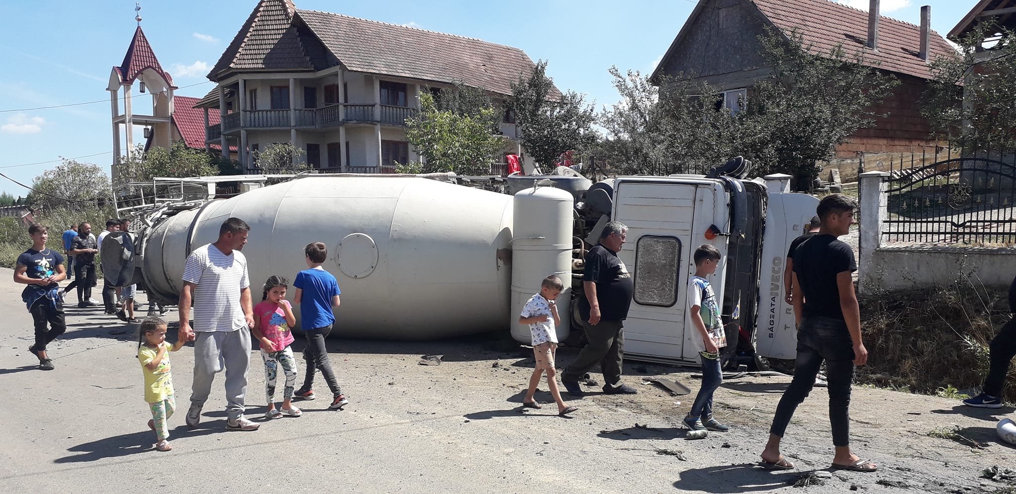 O cifă s-a răsturnat în satul Huseni, comuna Crasna. Din relatările martorilor, cifa aparține societății Săgeata SRL și accidentul s-ar fi produs din cauza vitezei.