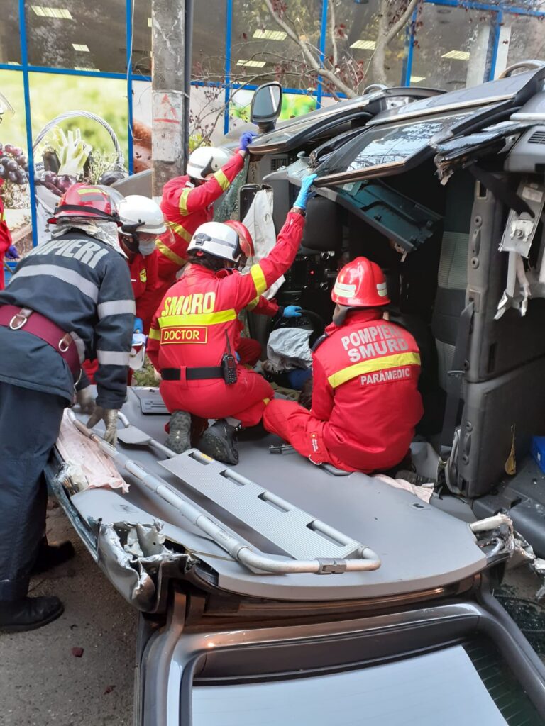 ȘTIRE INIȚIALĂ: În urmă cu puțin timp, pompierii șimleuani au fost solicitați să intervină la un eveniment rutier petrecut pe strada Tineretului (lângă magazinul Unicarm) din localitate. În accident a fost implicat un singur autoturism, care s-a răsturnat. În mașină se aflau 5 persoane: 1 adult (conștient, care a rămas încarcerat) și 4 minori (conștienți), care au fost preluați de echipajele medicale.