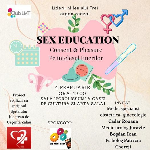 Spitalul Județean de Urgență Zalău, în calitate de partener al evenimentului “Sex Education” invită adolescenții la o întâlnire educativă, sâmbătă, 4 februarie, la ora 12.00, la Sala Porolissum din cadrul Centrului de Cultură și Artă al județului Sălaj.