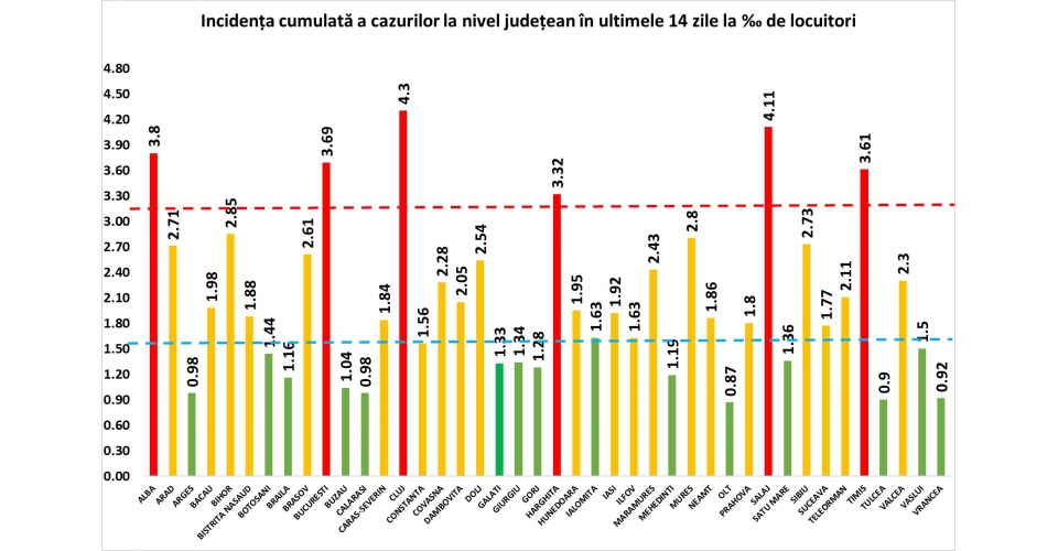 In Sălaj, au fost confirmate 198 de cazuri noi. Incidența bolii a ajuns la 4,11 la mia de locuitori, procent care ne plasează pe locul 2 la nivel național, după Cluj.