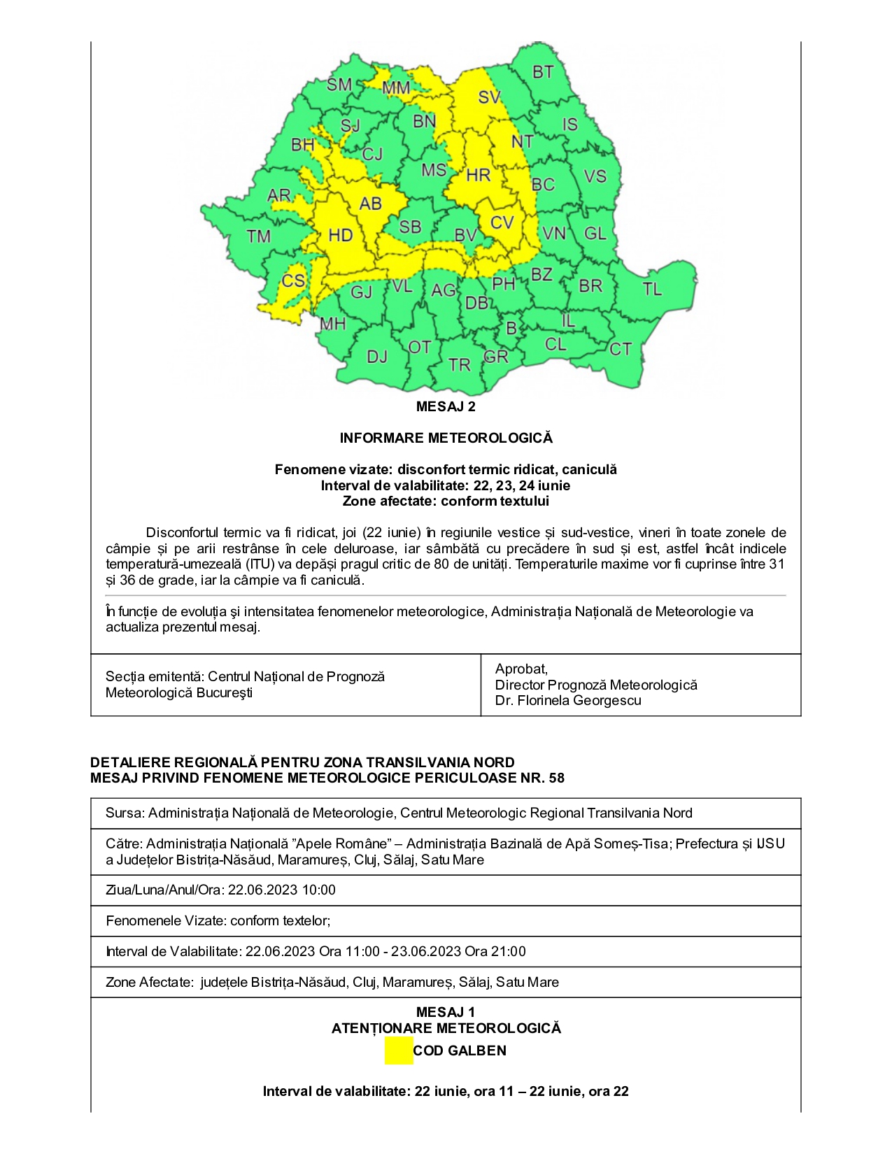 Alertă meteo ANM de caniculă. Directoarea Elena Mateescu a anunțat că vineri, 23 iunie, va fi cea mai călduroasă zi din anul 2023. Temperaturile vor crește semnificativ, după care vor scădea brusc, marcând o diferență chiar și de zece grade. Cu ce fenomene meteorologice ne vom confrunta în următoarele ore.