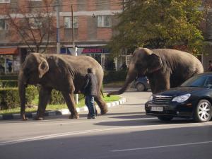 Proteste avem, scandaluri sunt cu duiumul, ce ne mai lipsea? Circul. Ieri se plimbau nestingheriţi prin oraş doi elefanţi, mari cat un bloc, stăteau respectuos la culoarea roşie a semaforului şi traversau prin locurile special semnalizate. La sărăcia care bate prin buzunarile zălăuanilor numai de circ aveam nevoie acum cand oamenii ies in stradă, ajunşi in pragul disperării. De parcă nu am fi sătui de circul făcut de Guvernul Boc şi clasa politică.