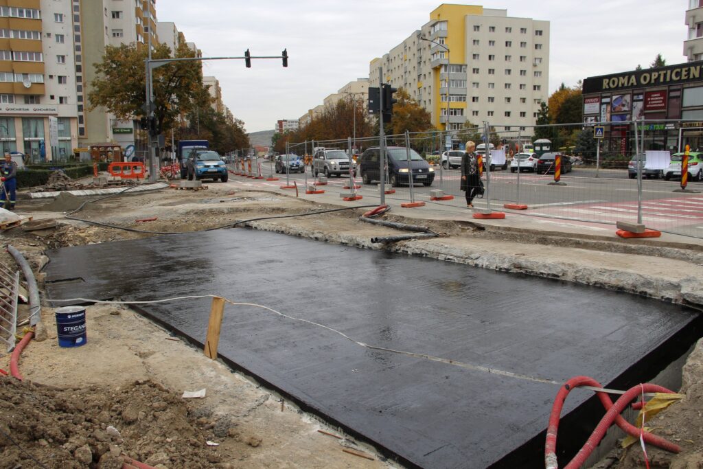 Până în prezent, au fost realizate straturile de fundații, inclusiv balastul stabilizat cu ciment, au fost montate bordurile și rampele de acces, a fost configurat trotuarul și a fost realizată fundația.
