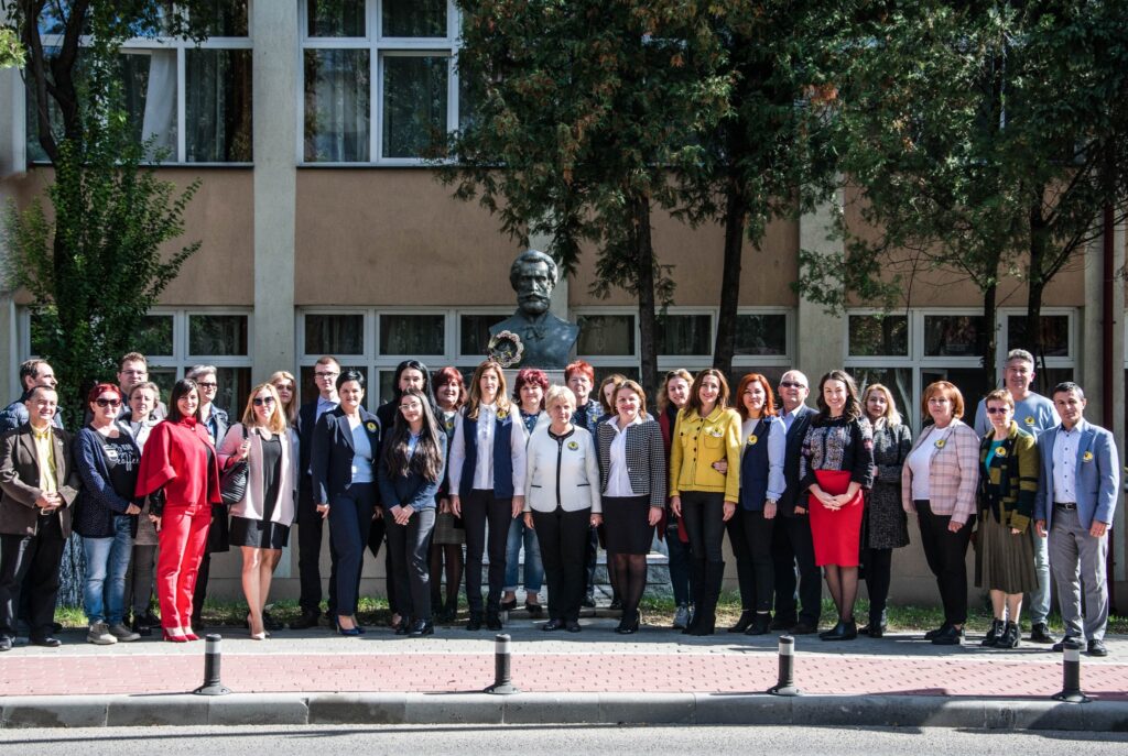 Tot joi, cadre didactice și elevi ai Colegiului au depus jerbe la bustul patronului spiritual.